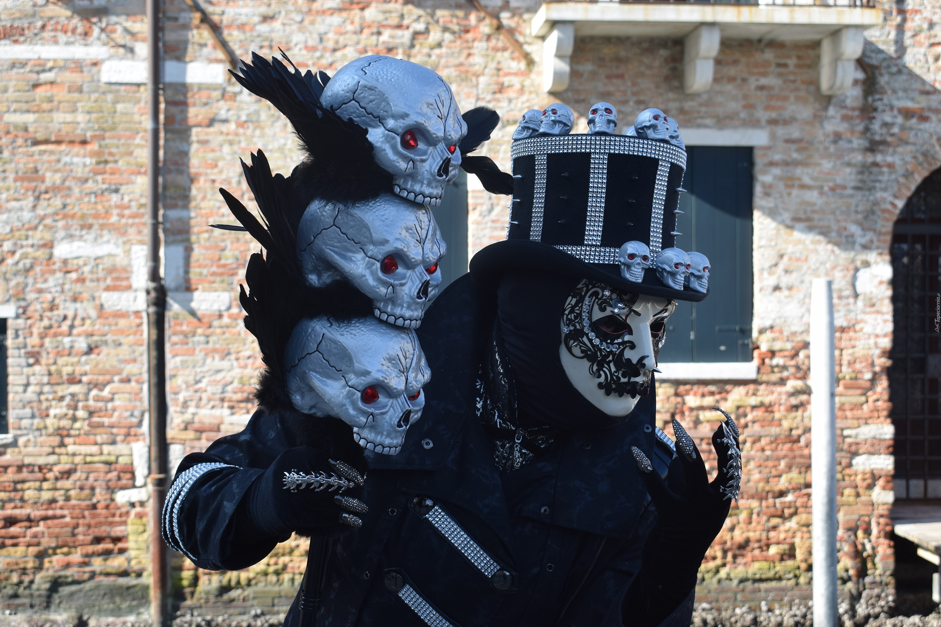 Edytor tapety: Postać w masce karnawałowej i czaszkami