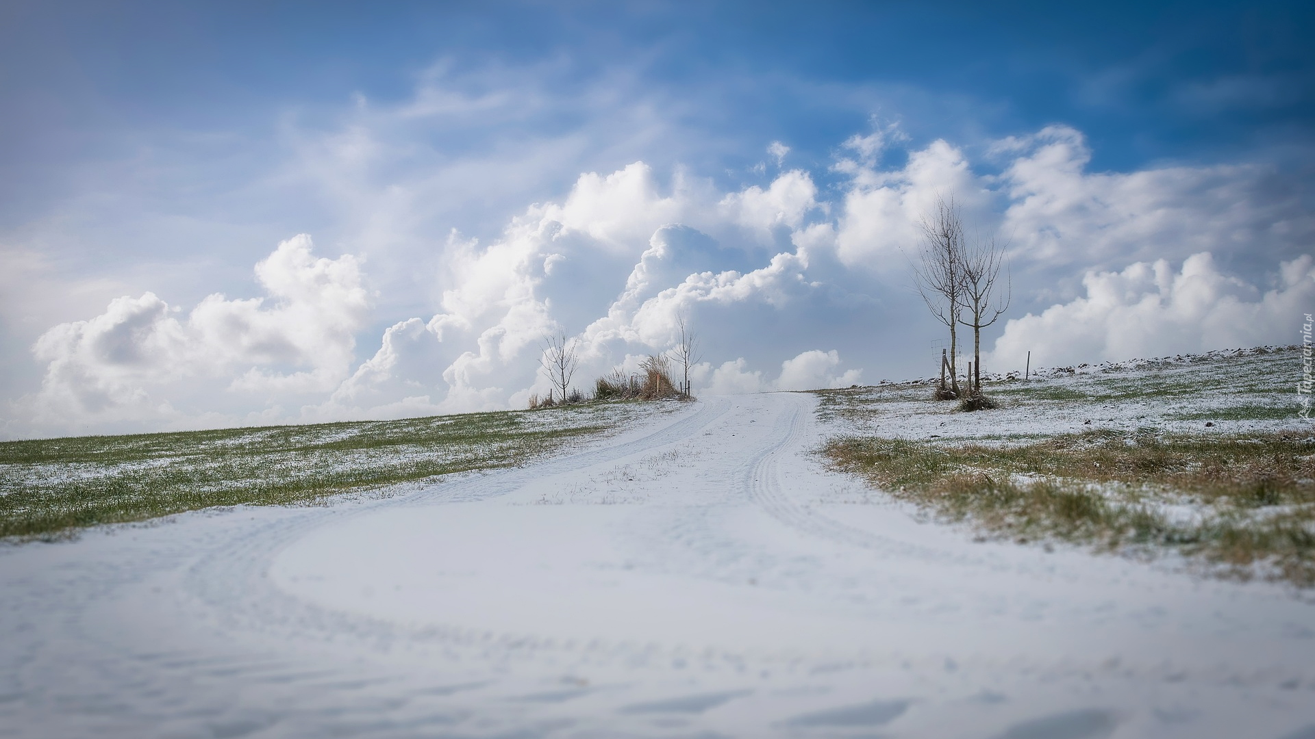 Edytor tapety: Chmury nad ośnieżoną drogą