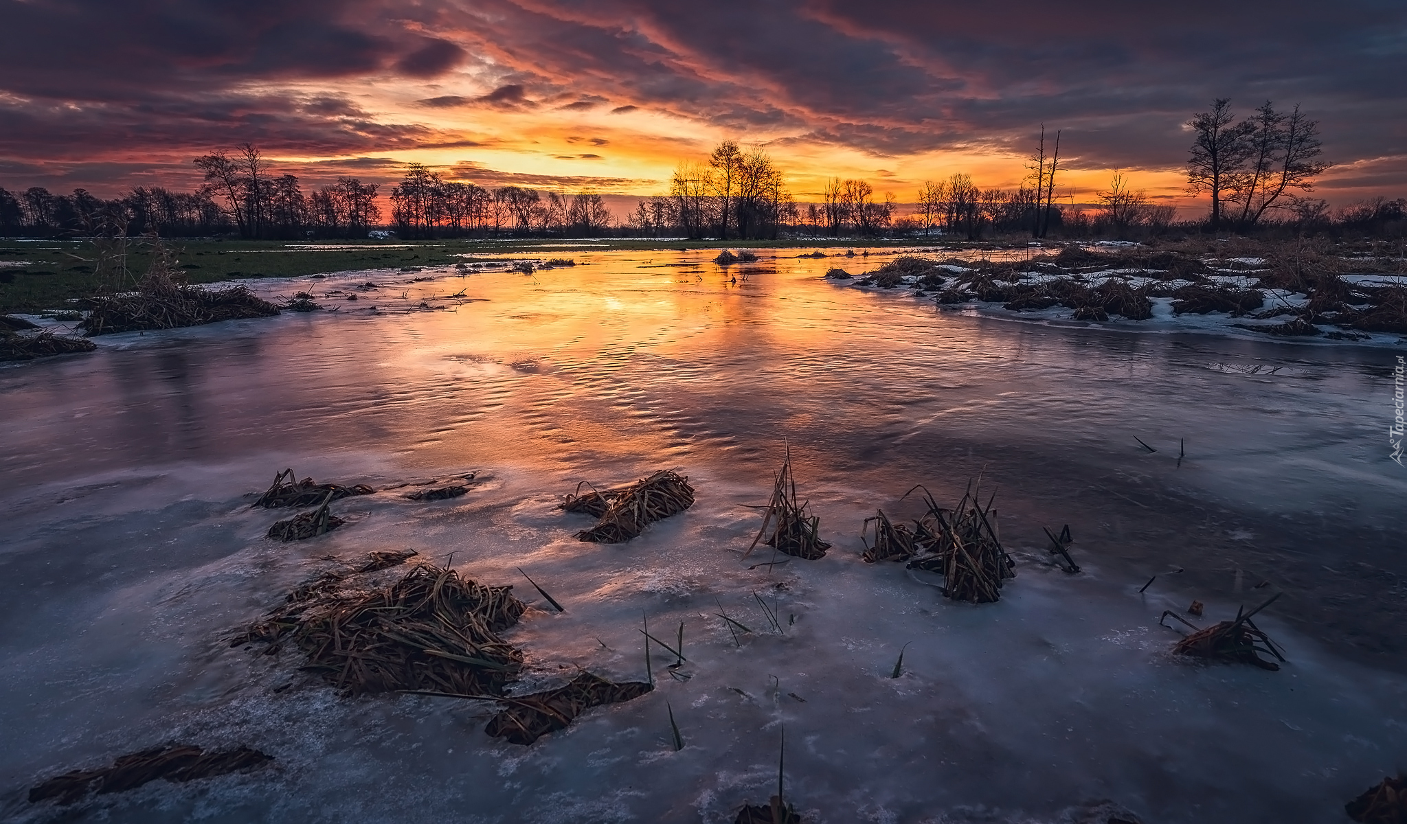 Edytor tapety: Zachód słońca nad zamarzającą rzeką
