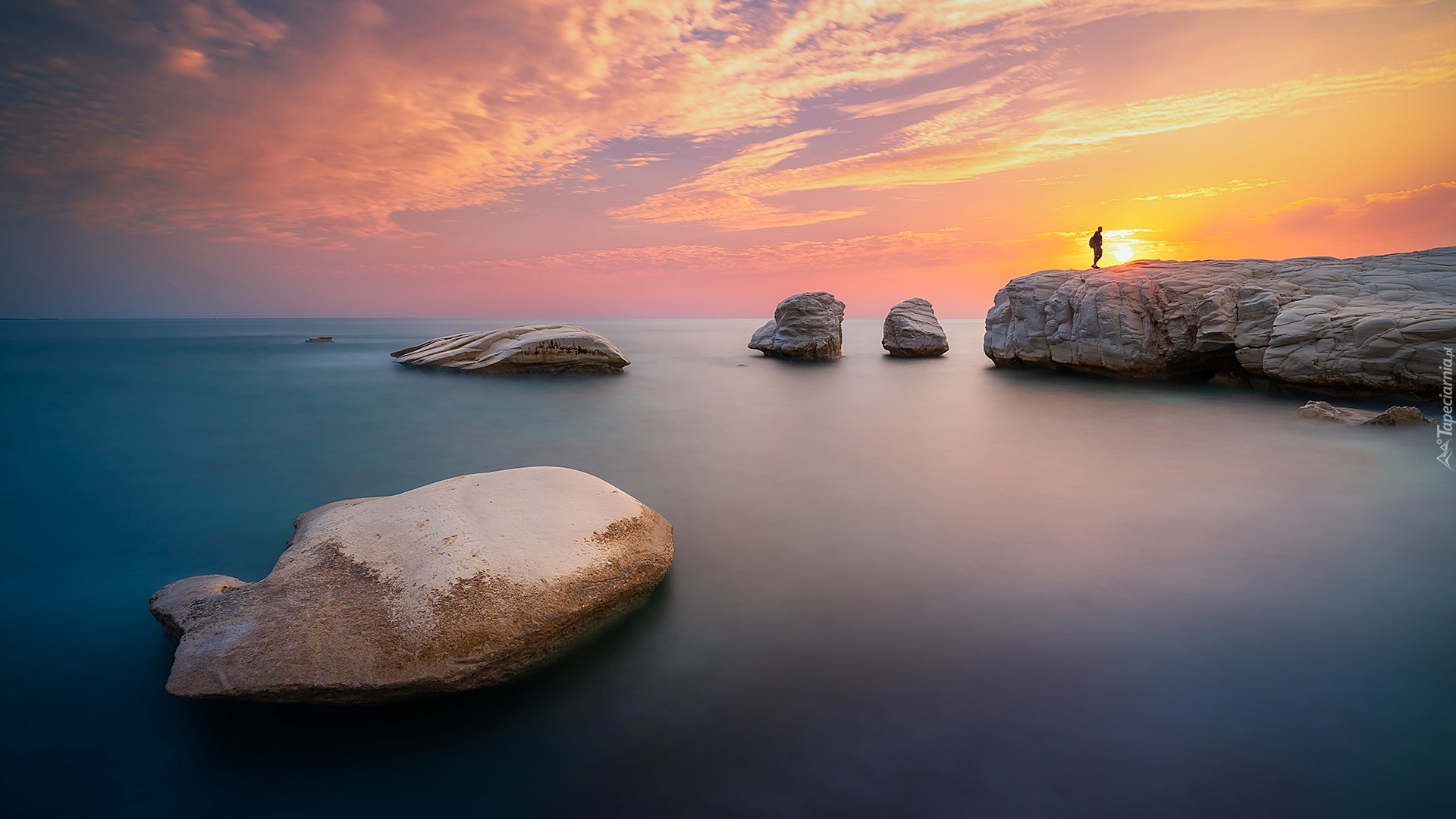 Edytor tapety: Człowiek na skale przy brzegu morza