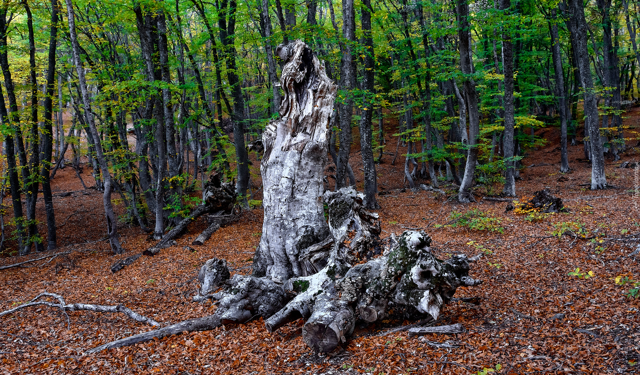 Edytor tapety: Uschnięte drzewo w zielonym lesie
