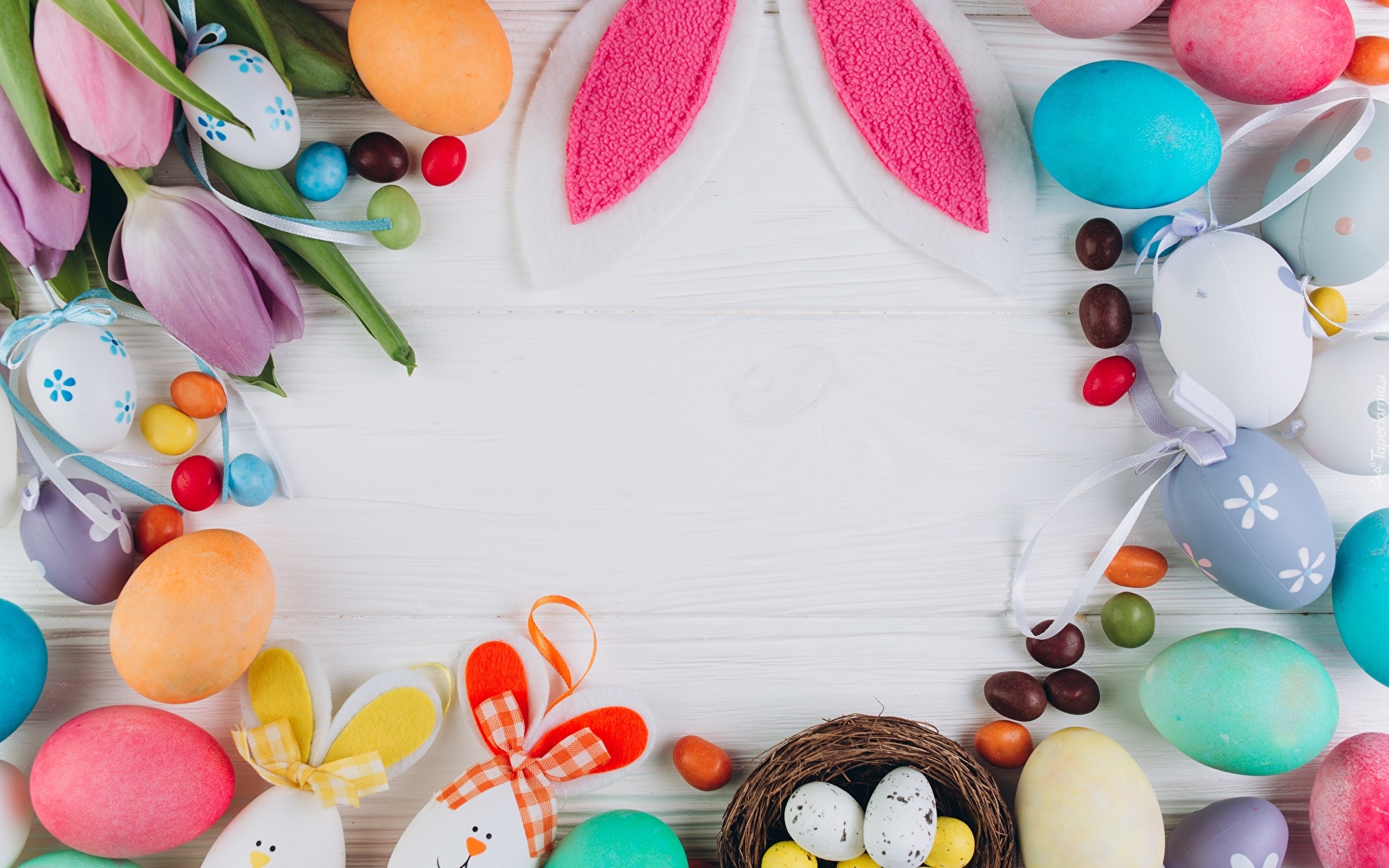 Edytor tapety: Wielkanocna kompozycja z uszami zająca