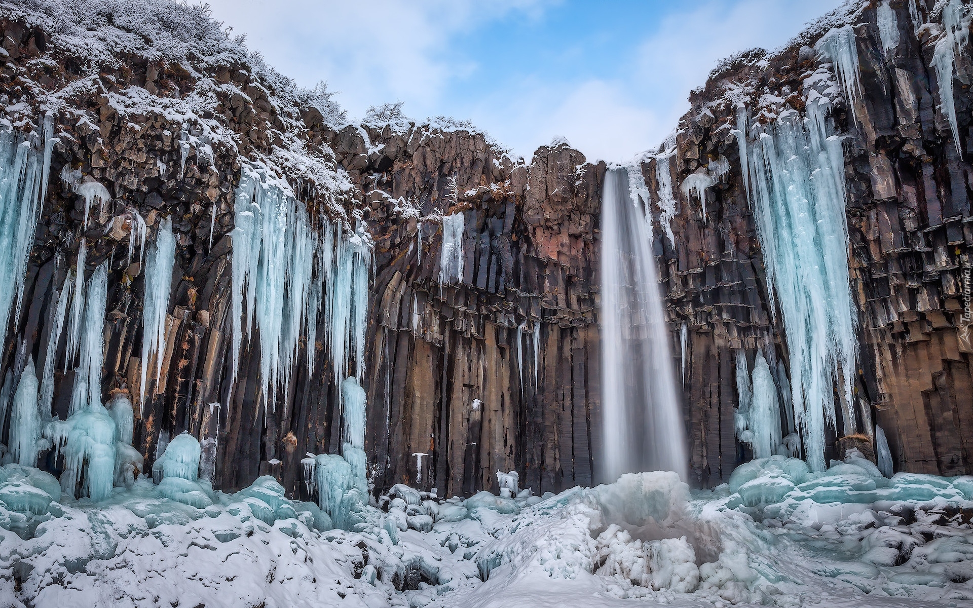 Edytor tapety: Zwisające sople przy wodospadzie Svartifoss Falls