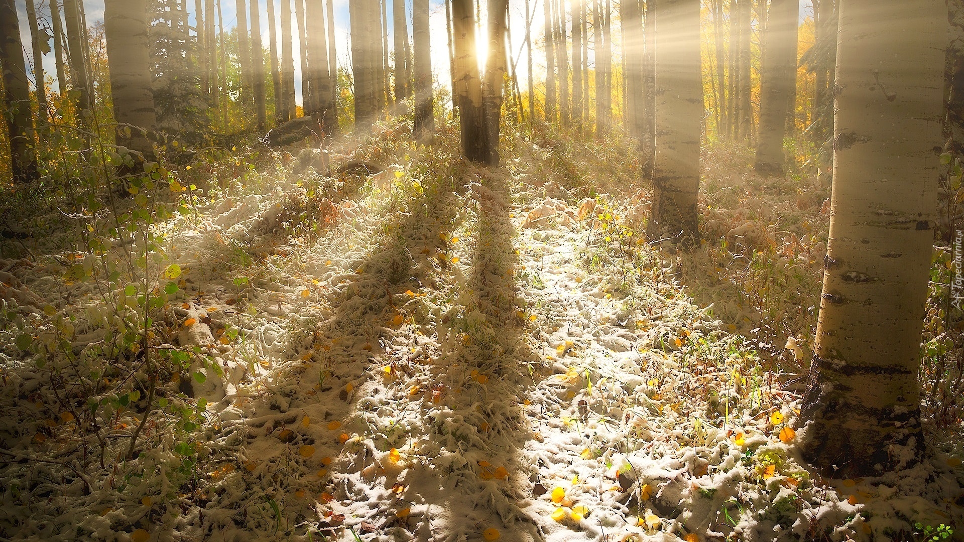 Edytor tapety: Brzozy w świetle słonecznym
