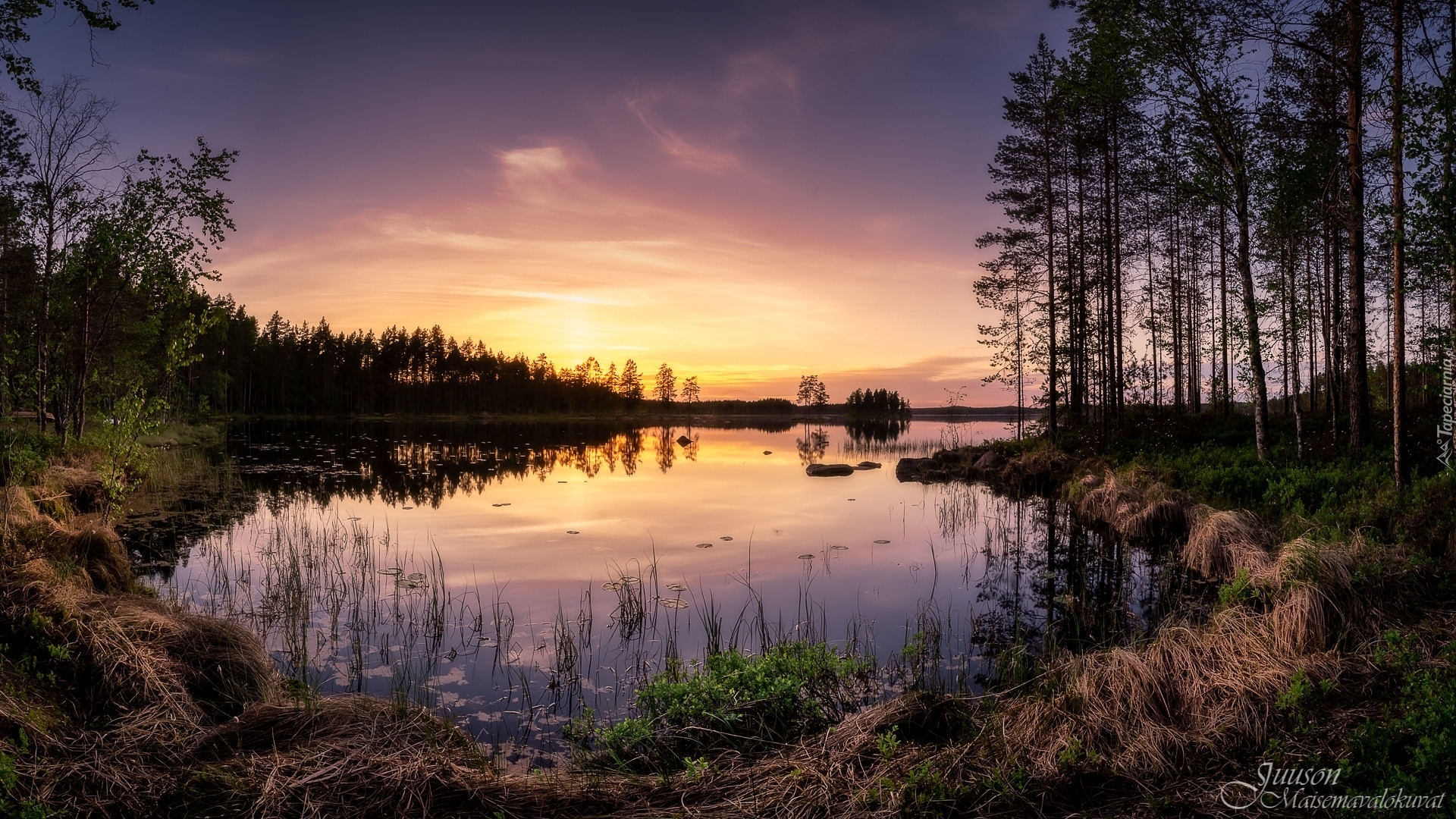 Edytor tapety: Zachód słońca nad jeziorem Haukkajarvi w Finlandii