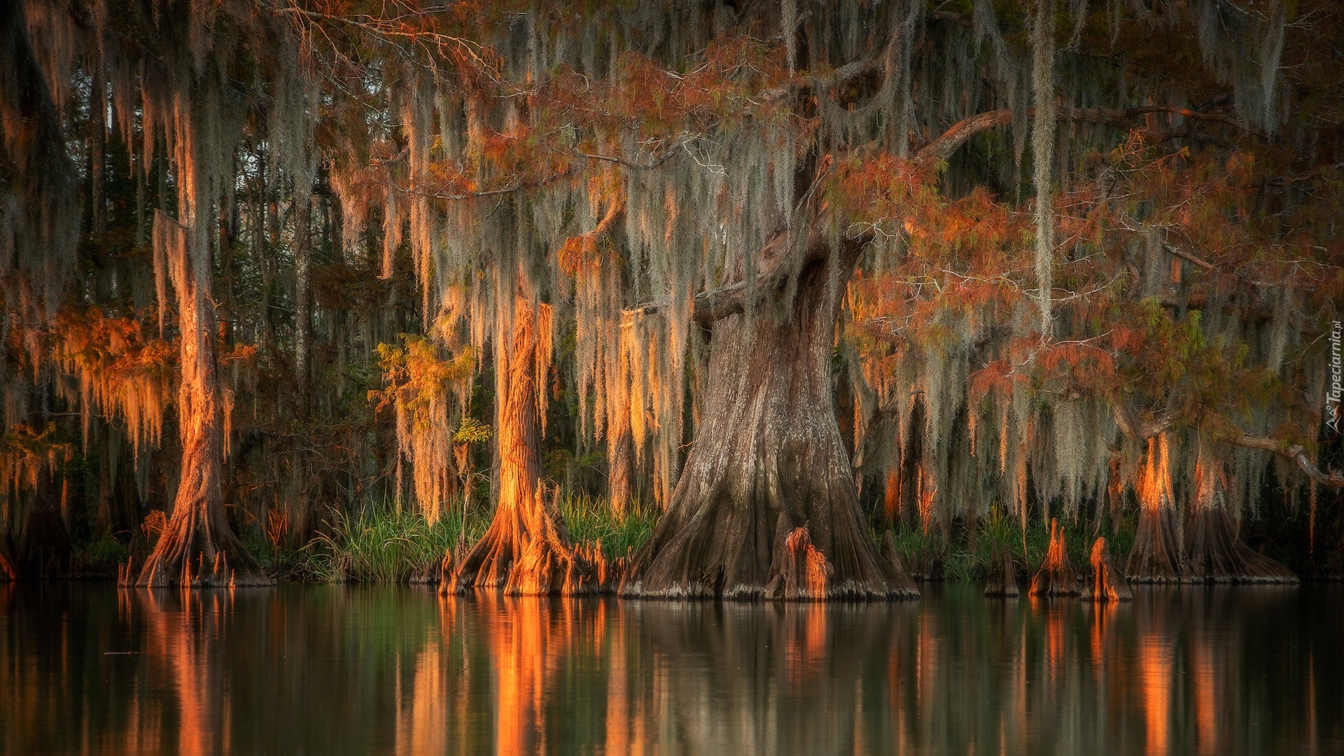 Edytor tapety: Mech hiszpański na cyprysach bagiennych