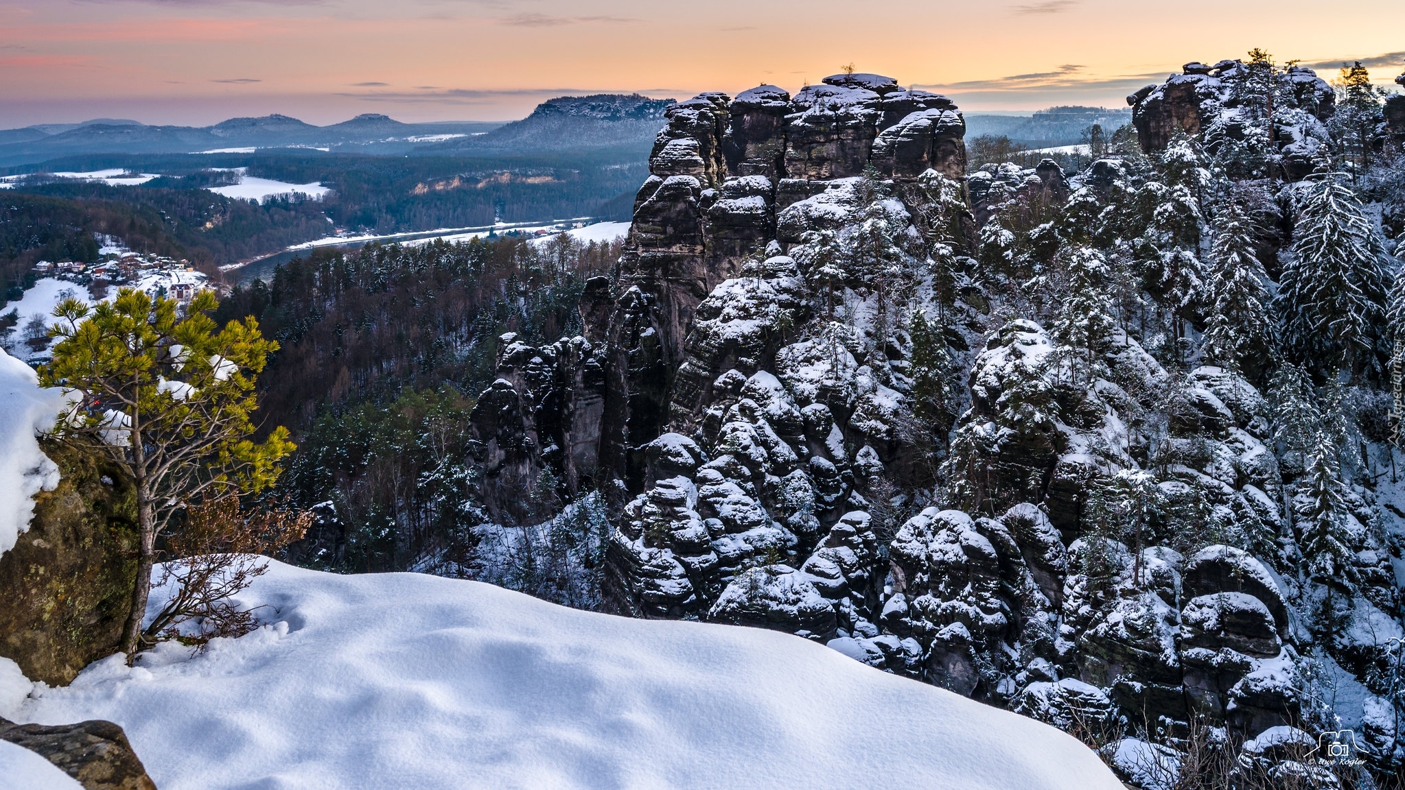 Edytor tapety: Ośnieżone skały w Górach Połabskich
