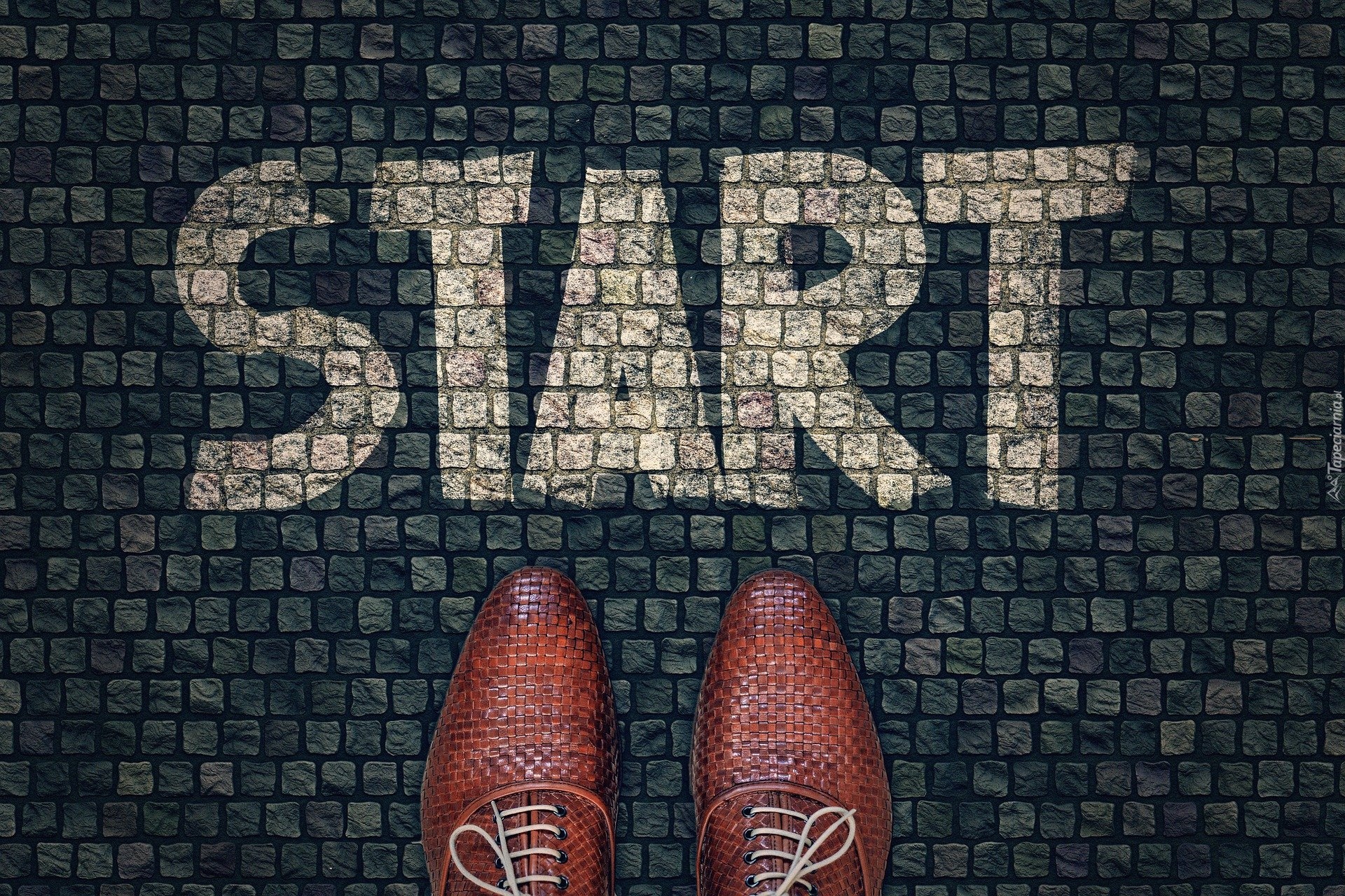 Edytor tapety: Buty ułożone przed napisem start