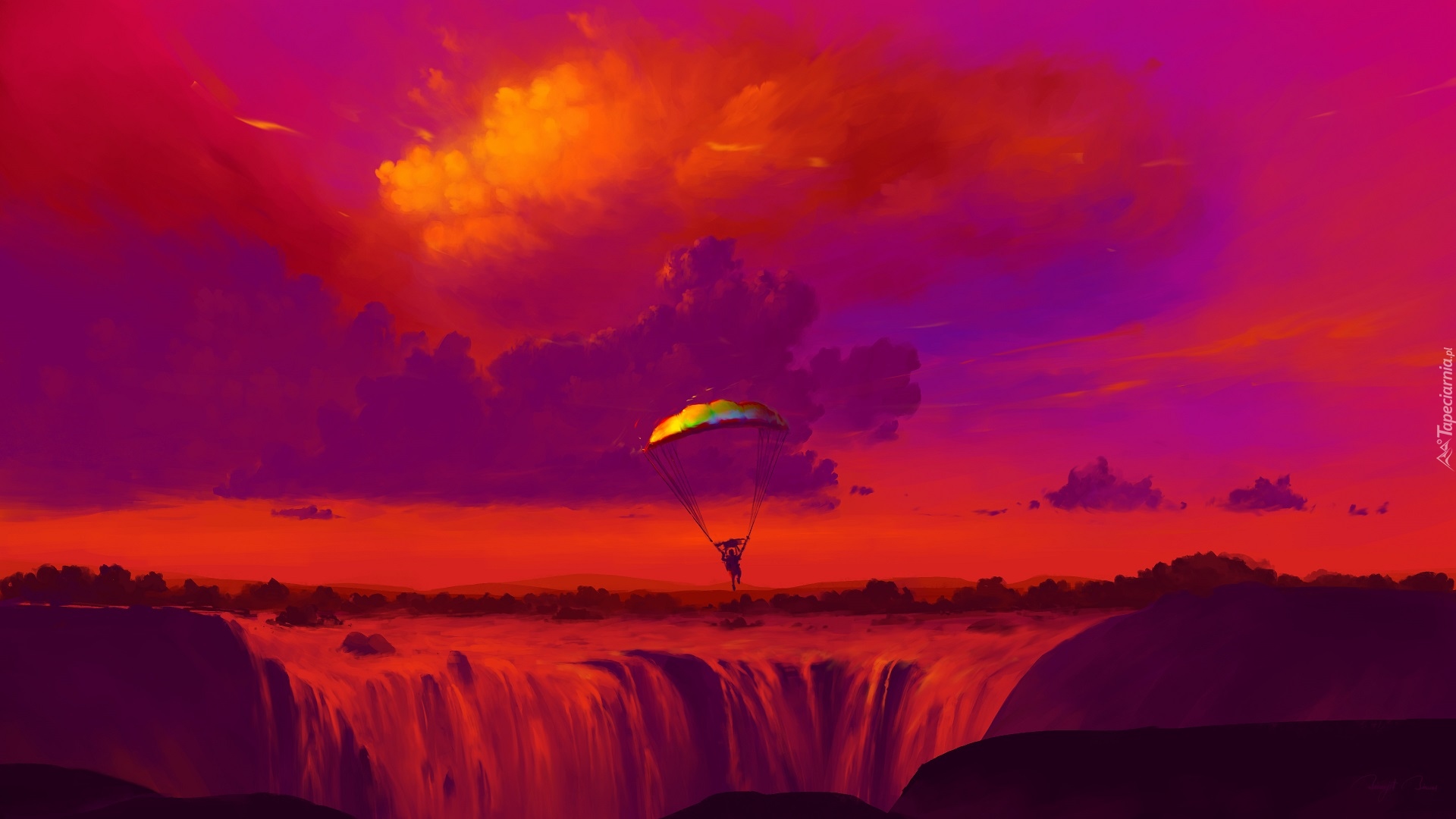 Edytor tapety: Spadochroniarz na tle czerwonego nieba