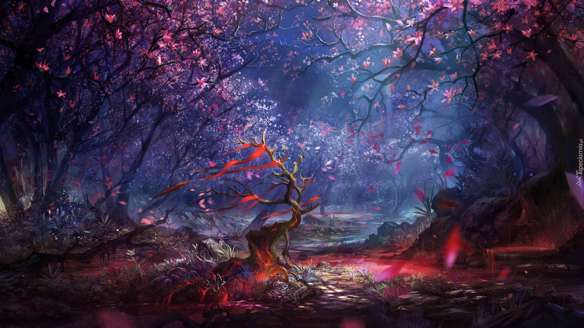 Edytor tapety: Grafika lasu z kolorowymi drzewami