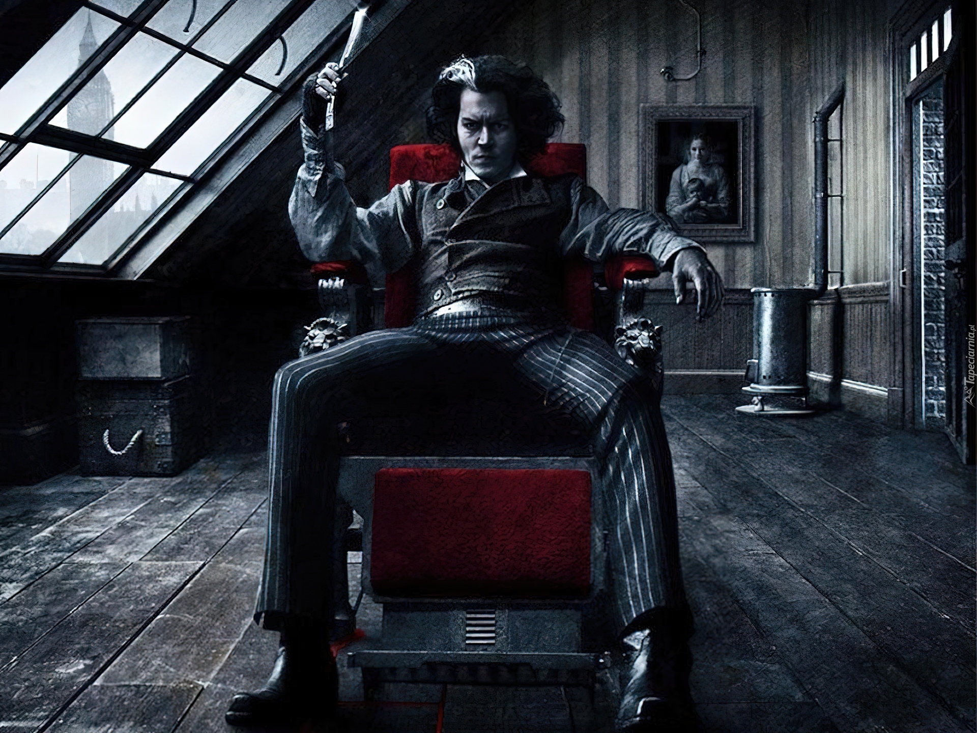 Edytor tapety: Sweeney Todd, Johnny Depp, poddasze, pokój, siedzi, fotel