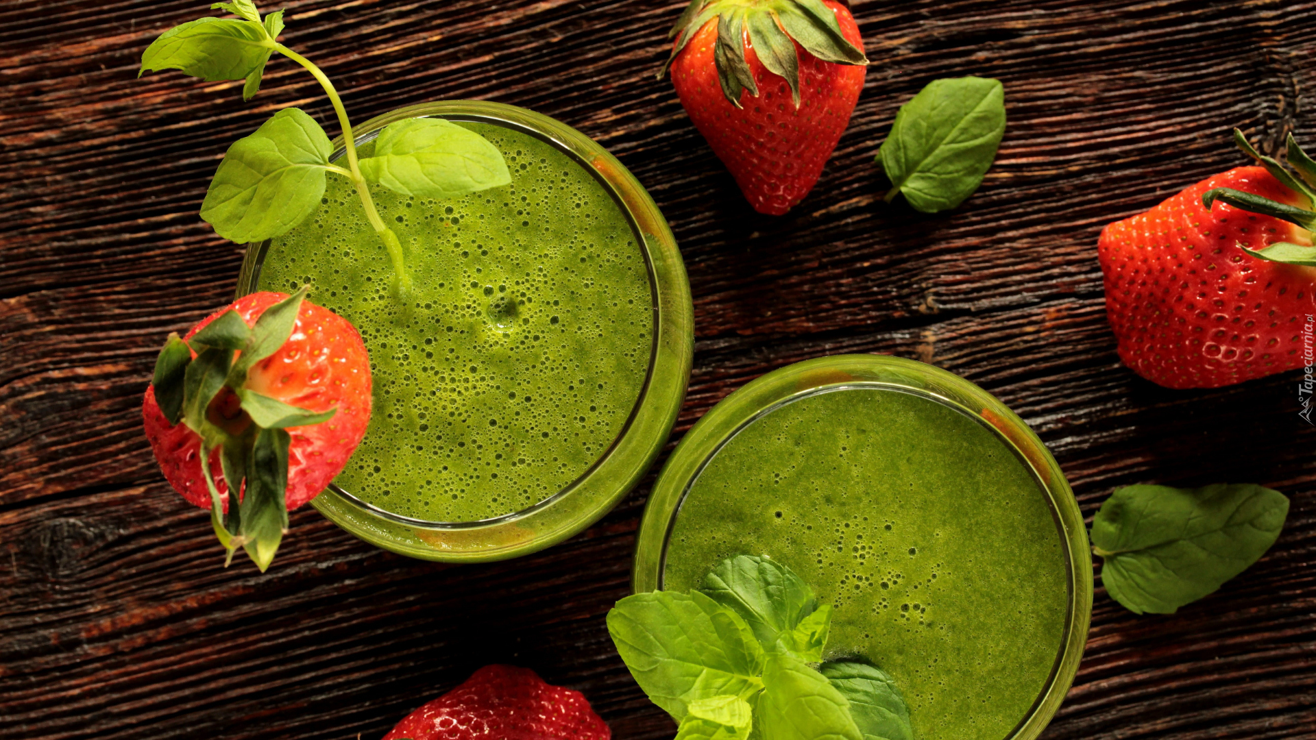 Edytor tapety: Zielone smoothie z truskawkami