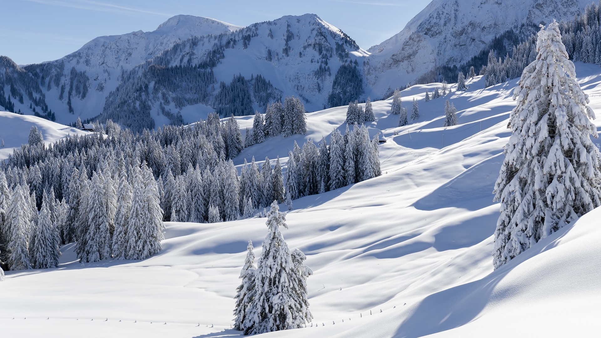 Edytor tapety: Słoneczny dzień w zimowych górach
