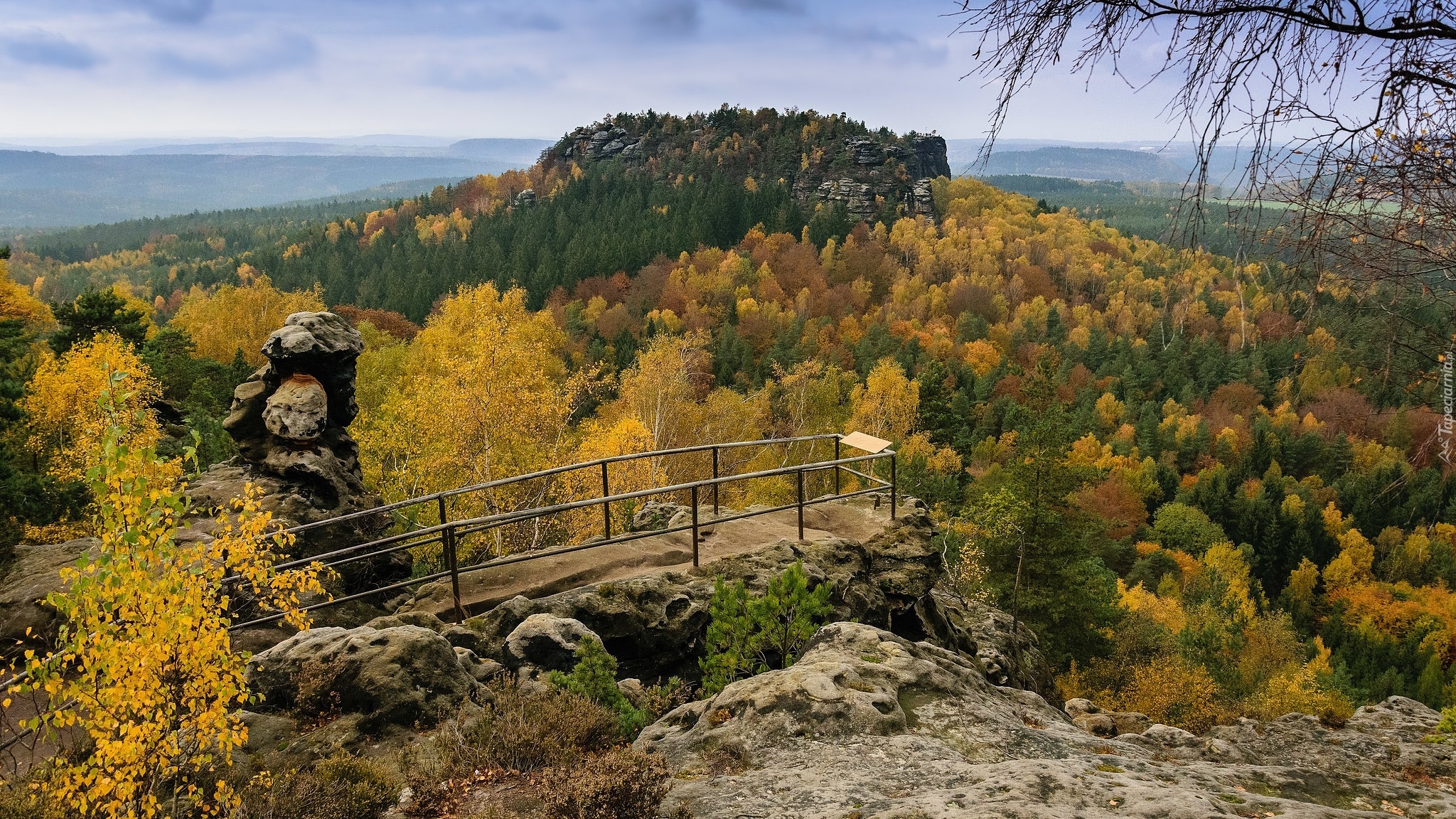 Edytor tapety: Punkt widokowy w jesiennym górskim lesie