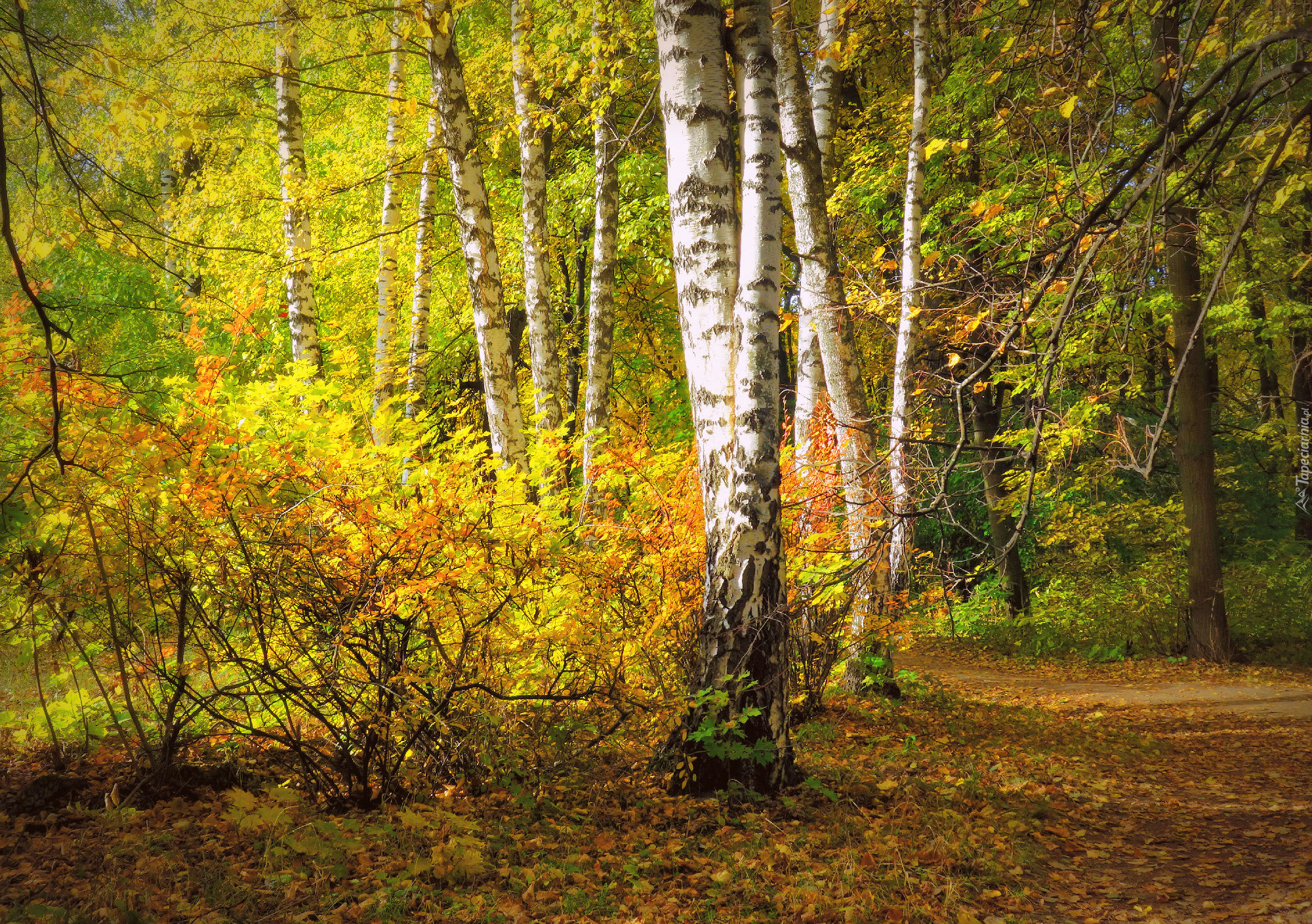 Edytor tapety: Brzozy przy leśnej ścieżce