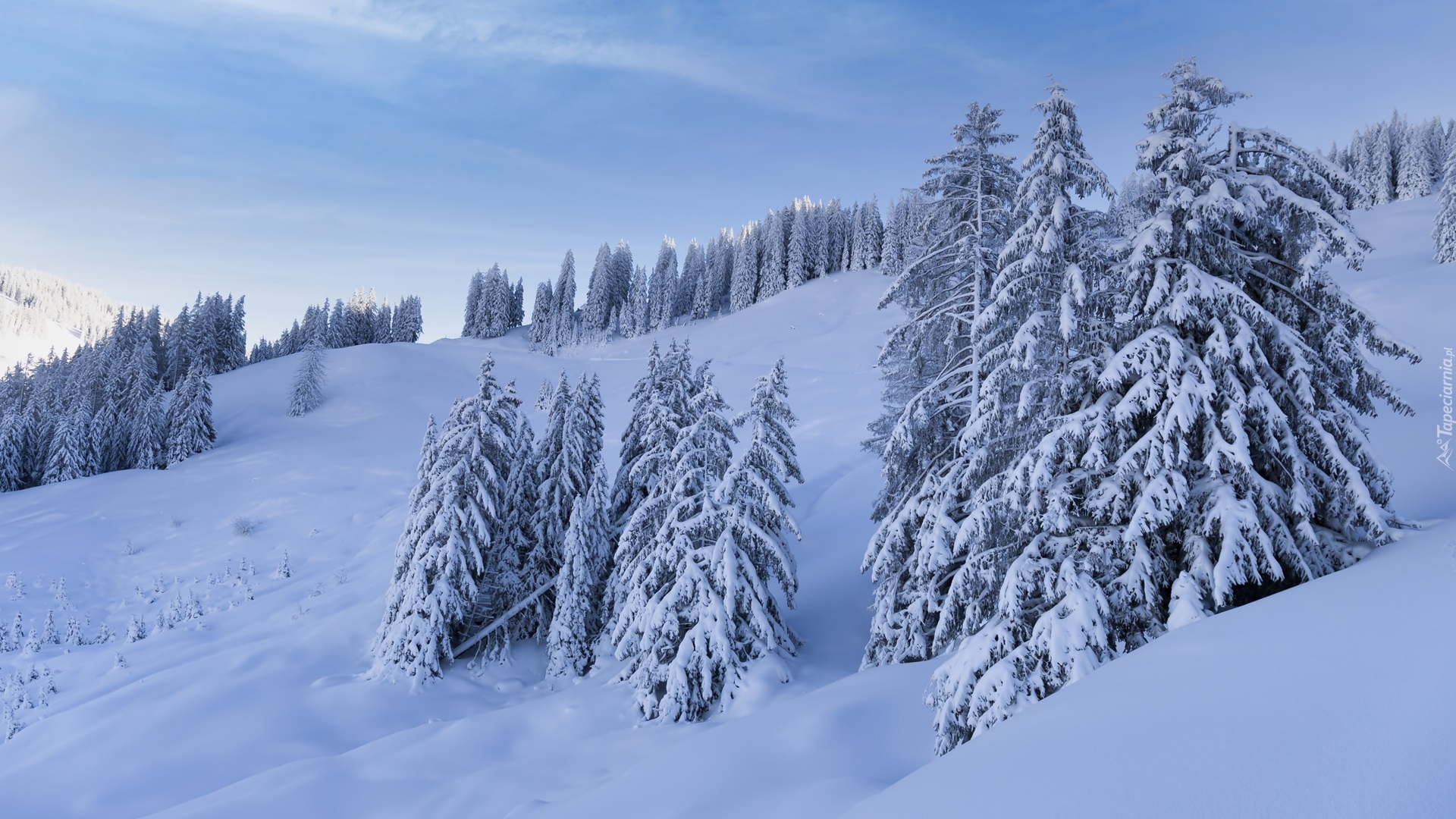 Edytor tapety: Ośnieżone drzewa na zboczu