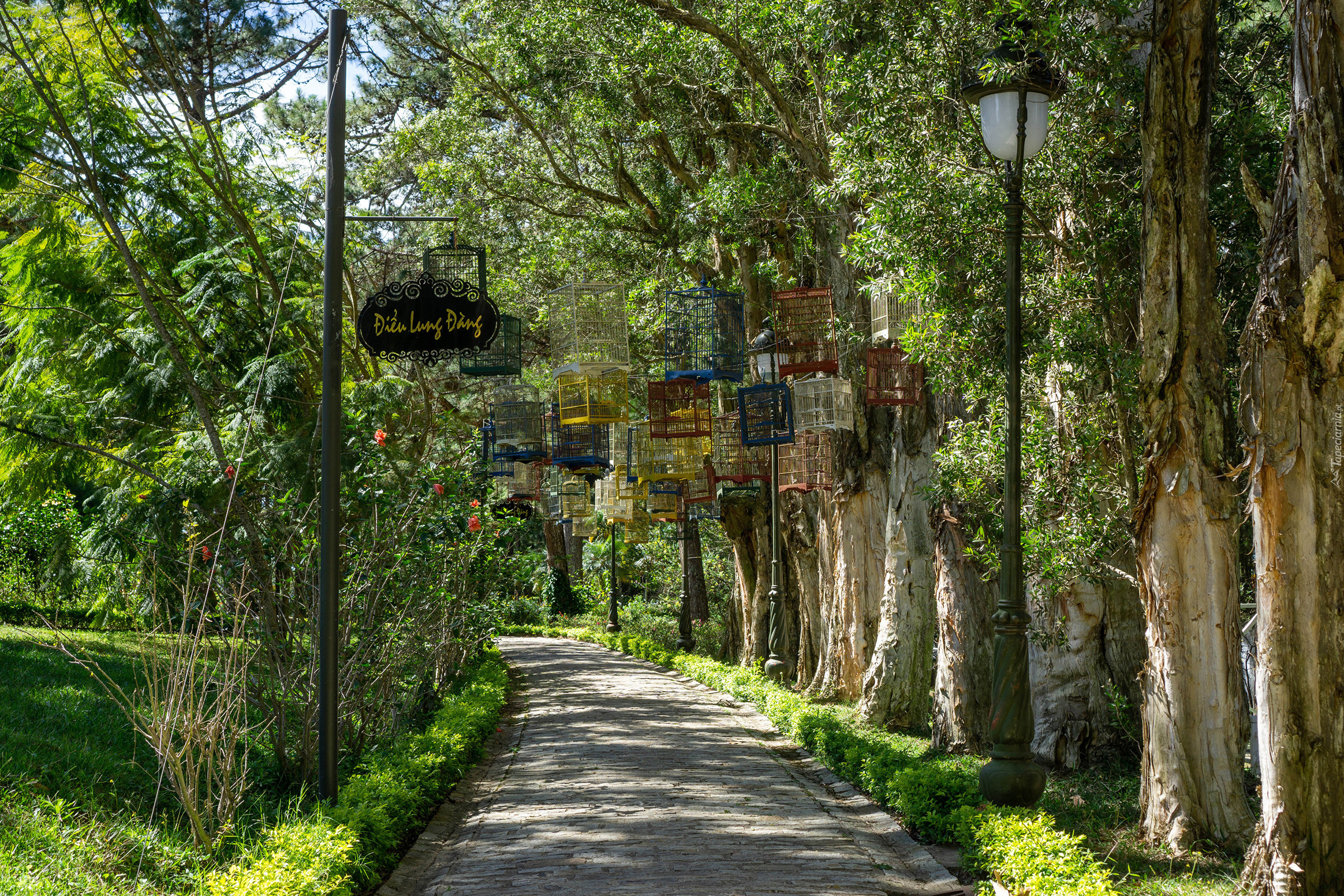 Edytor tapety: Klatki wiszące na drzewach