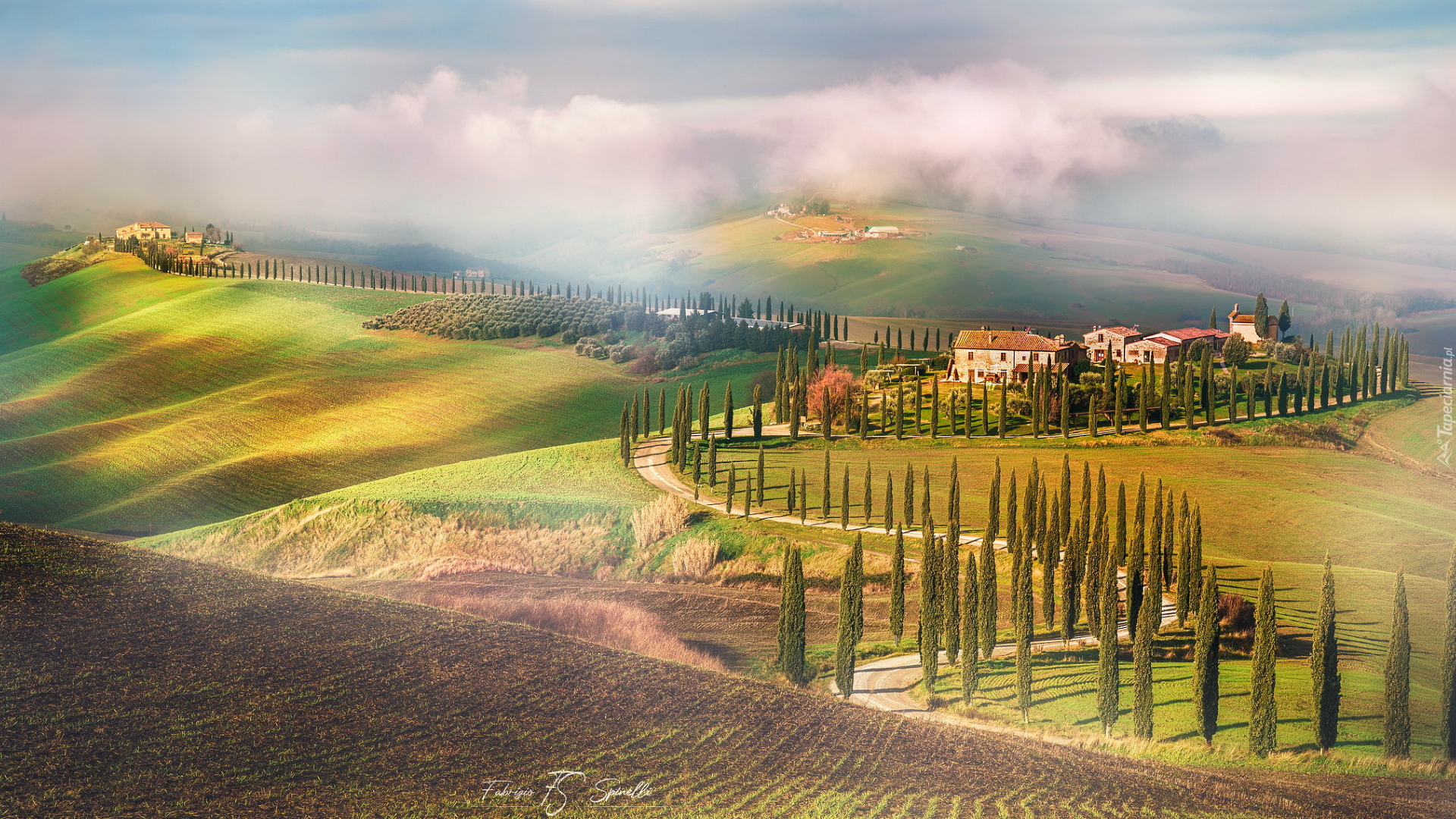 Edytor tapety: Hotel Agriturismo na zamglonych wzgórzach Toskanii