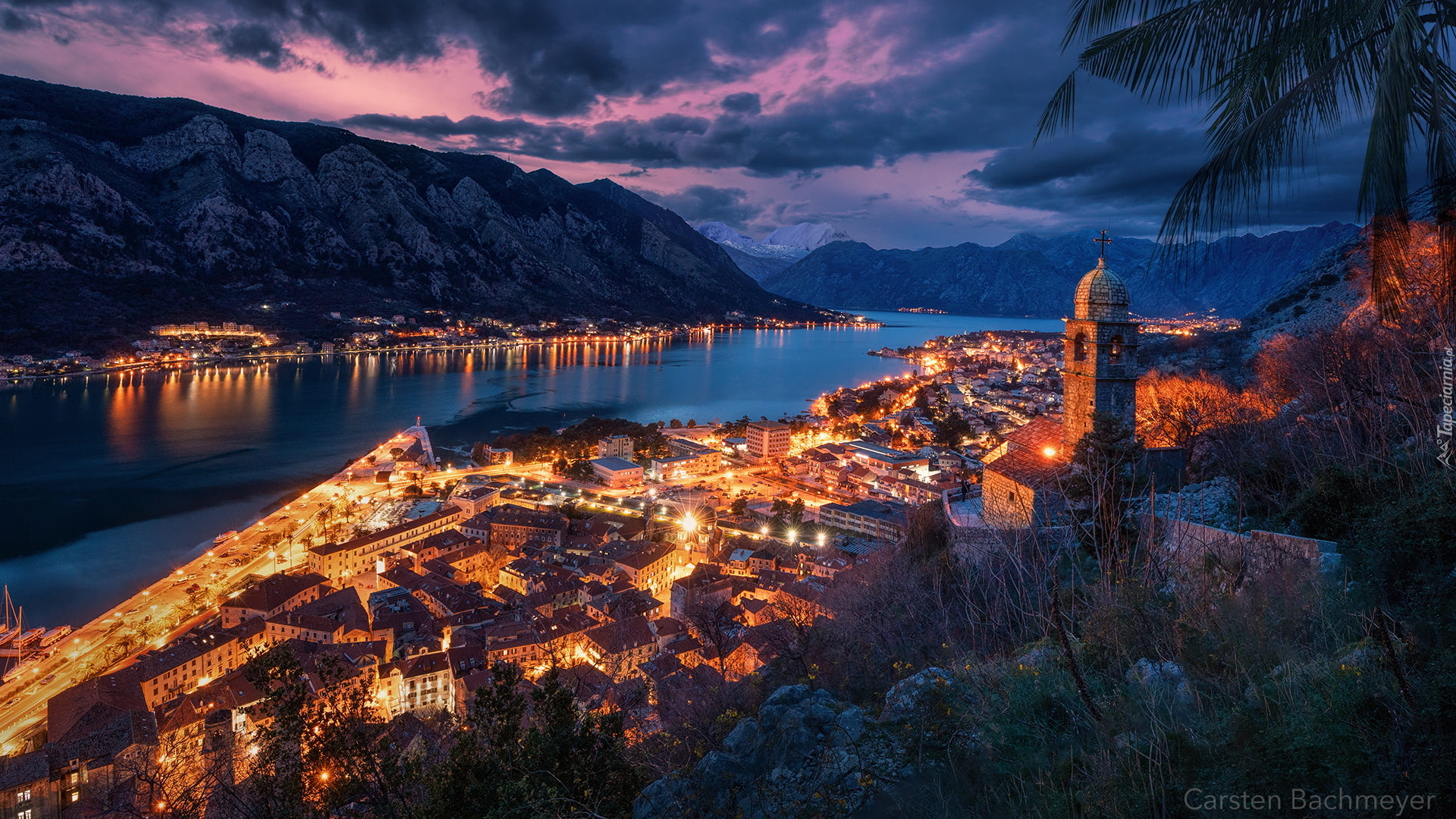 Edytor tapety: Noc nad Kotorem w Czarnogórze