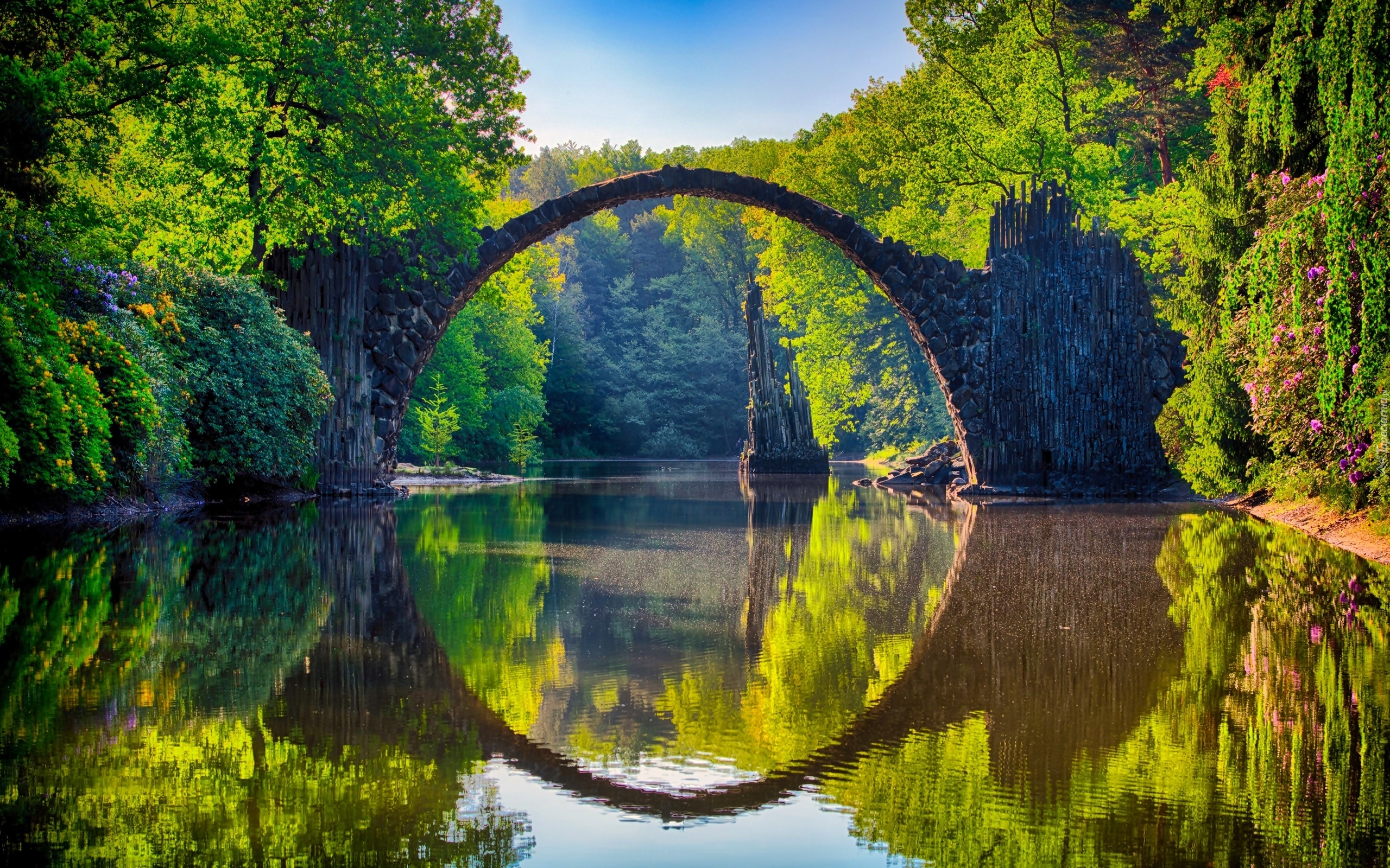 Edytor tapety: Kamienny most i jezioro Rakotz w Parku Kromlau