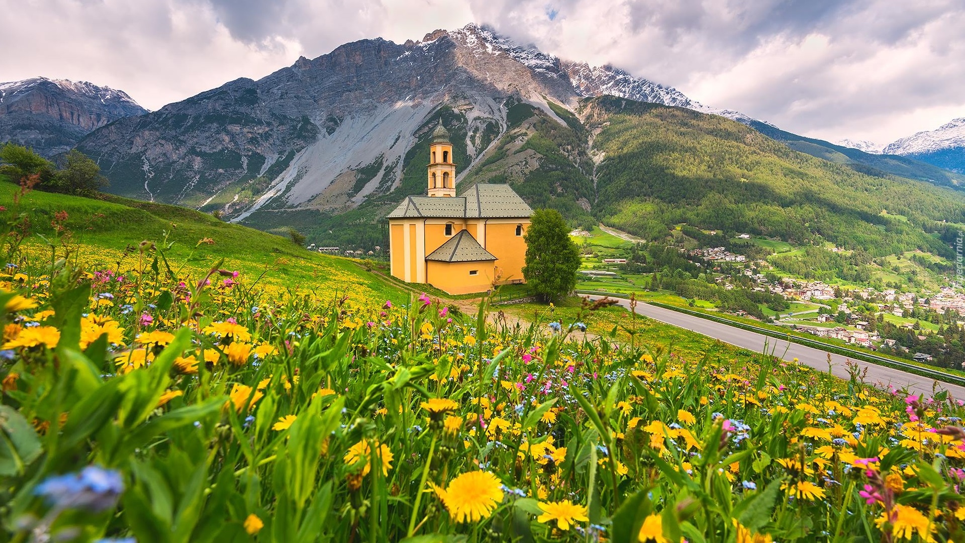 Edytor tapety: Kościółek przy górskiej drodze