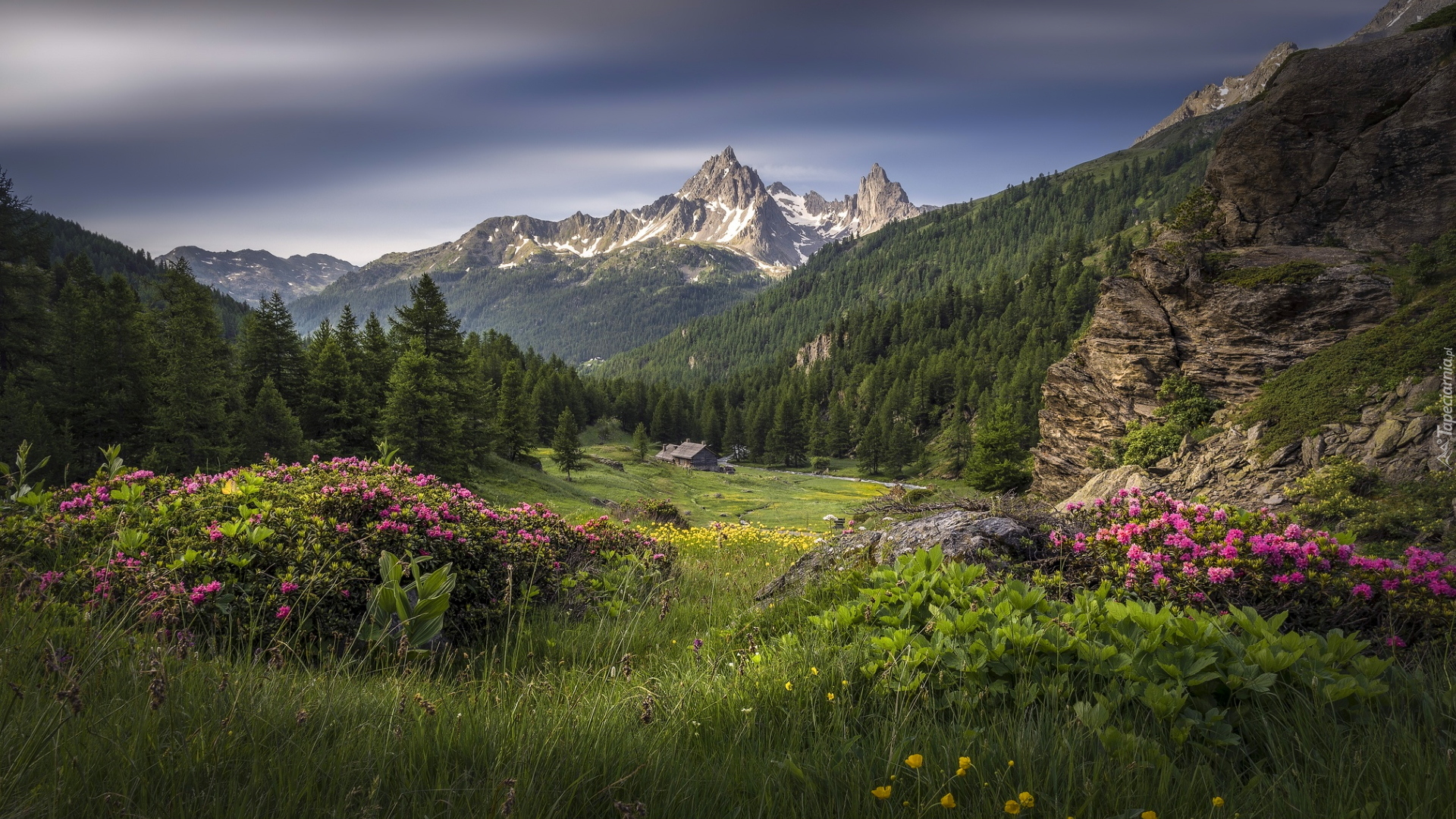 Edytor tapety: Kwitnące różaneczniki na górskiej polanie