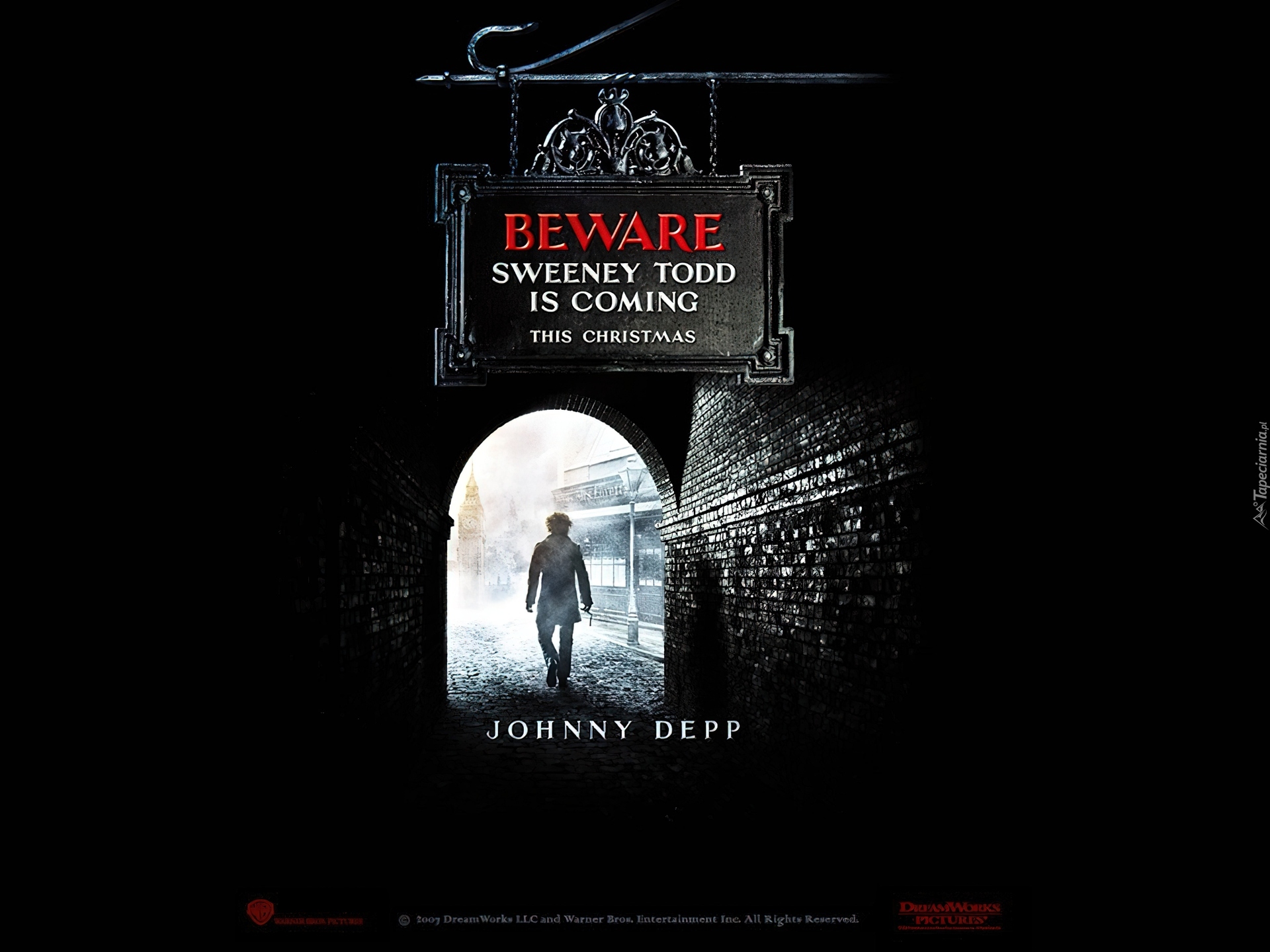 Edytor tapety: Sweeney Todd, postać, tunel, dym, tabliczka