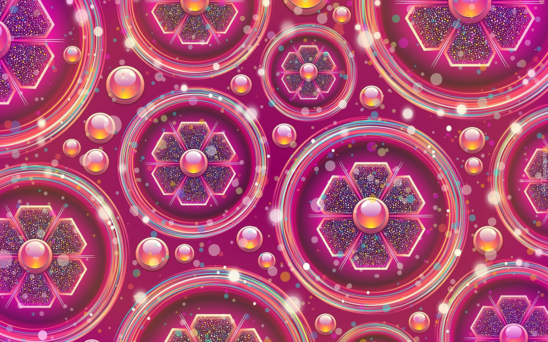 Edytor tapety: Kwiaty w kołach na różowym tle