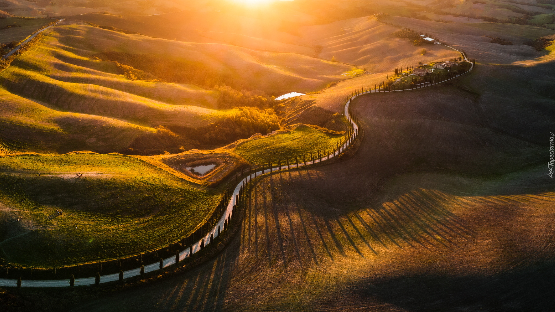 Edytor tapety: Kręta droga na wzgórzach Toskanii