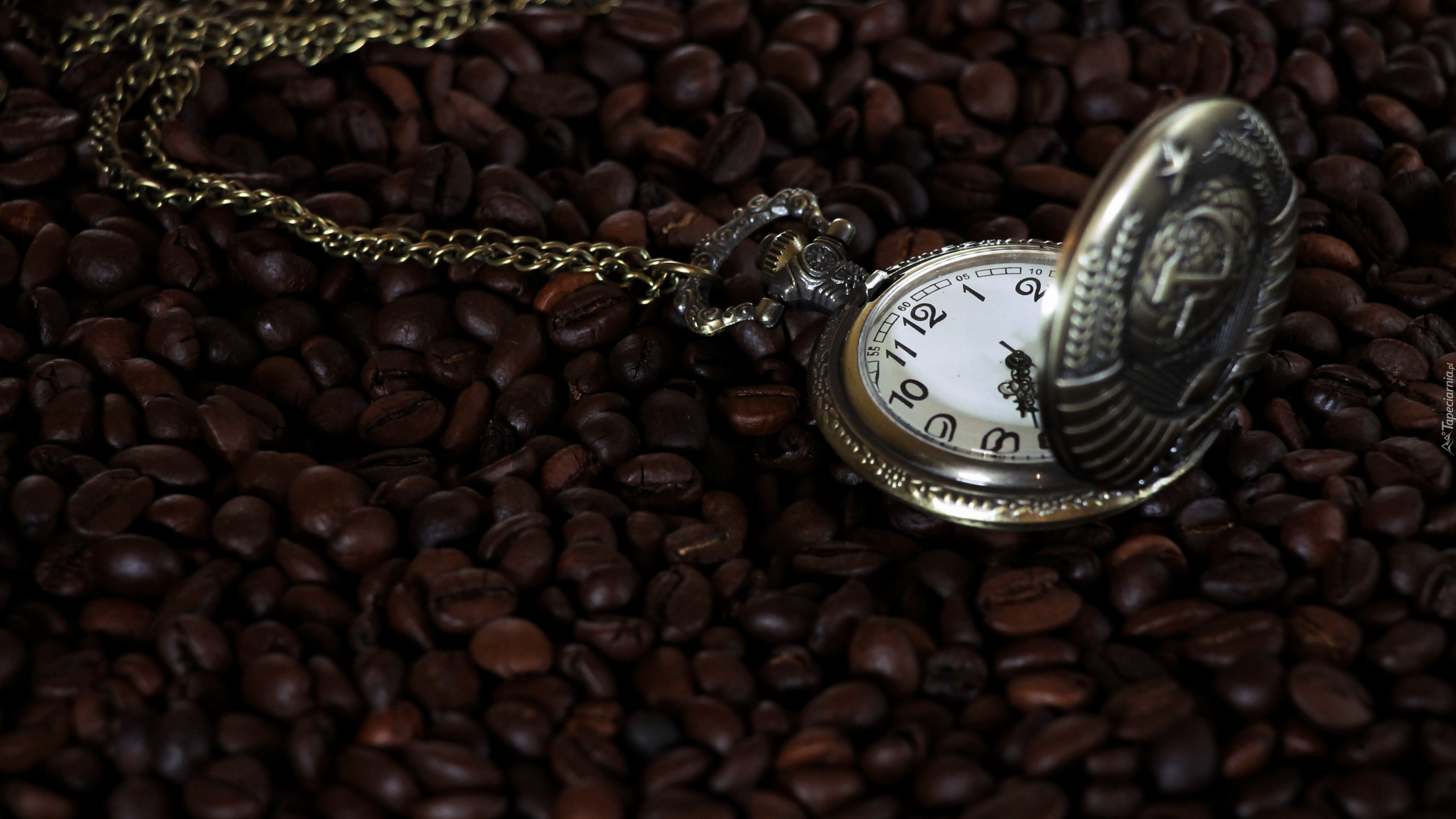 Edytor tapety: Zegarek kieszonkowy na ziarnach kawy