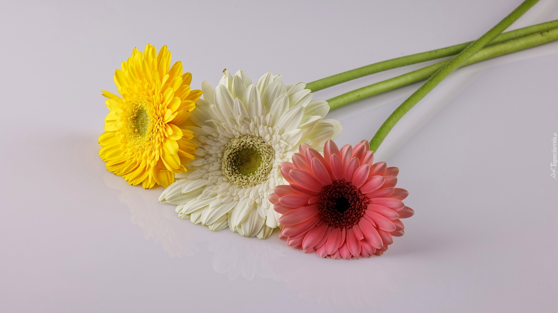Edytor tapety: Trzy kolorowe gerbery