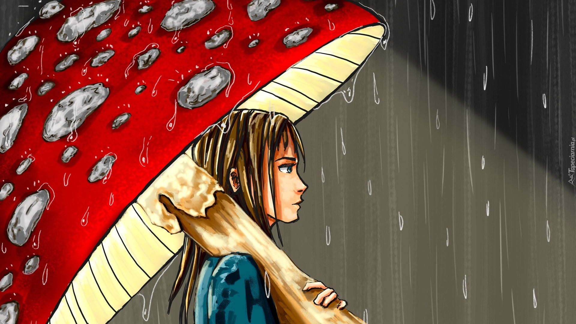 Edytor tapety: Dziewczyna pod parasolem z muchomora w grafice