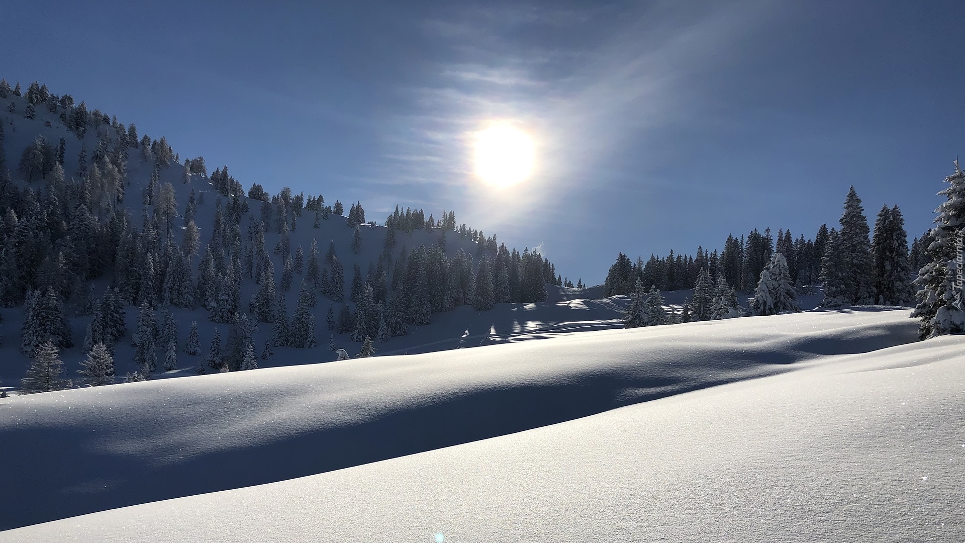 Edytor tapety: Zimowy krajobraz w słonecznym blasku