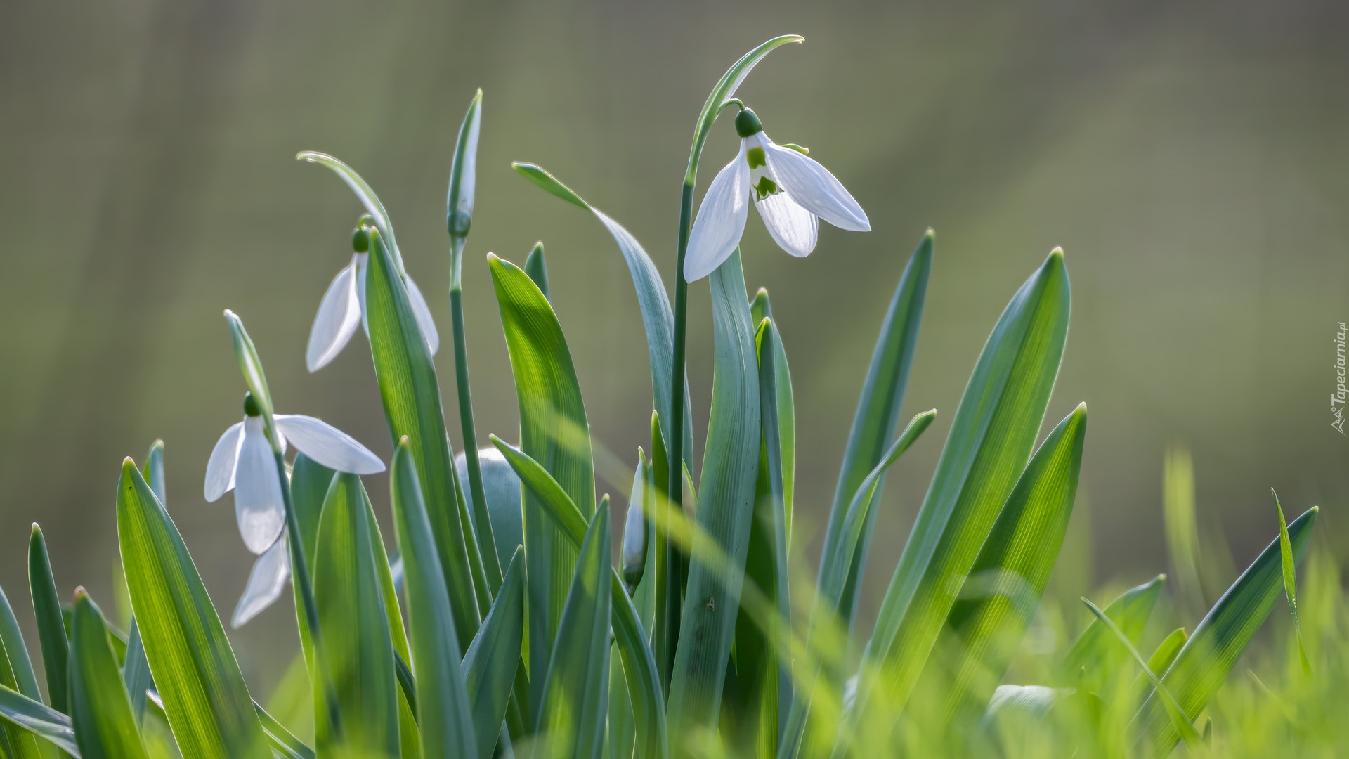 Edytor tapety: Kępka kwitnących przebiśniegów