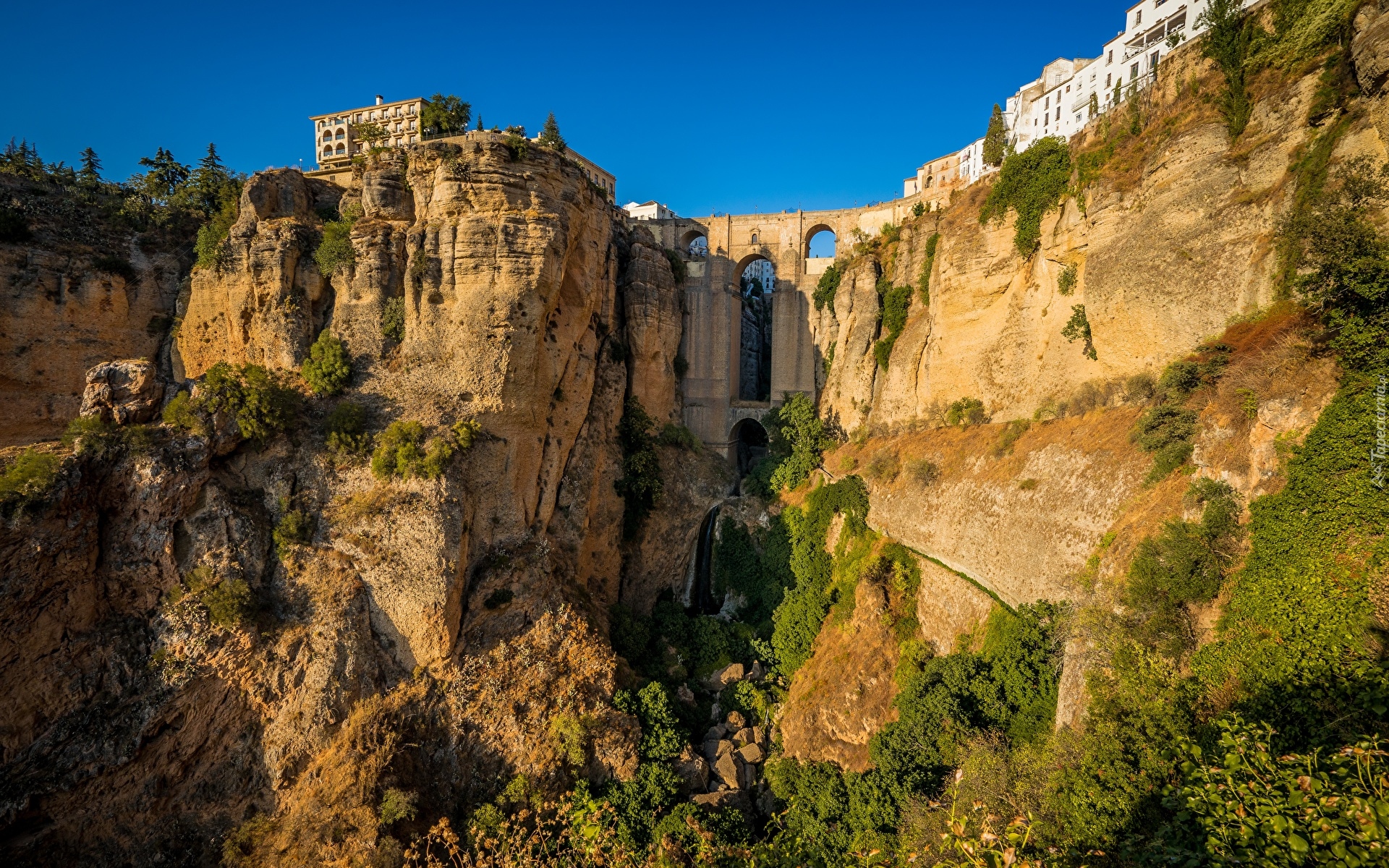 Edytor tapety: Most Puente Nuevo nad wąwozem Tajo w Hiszpanii