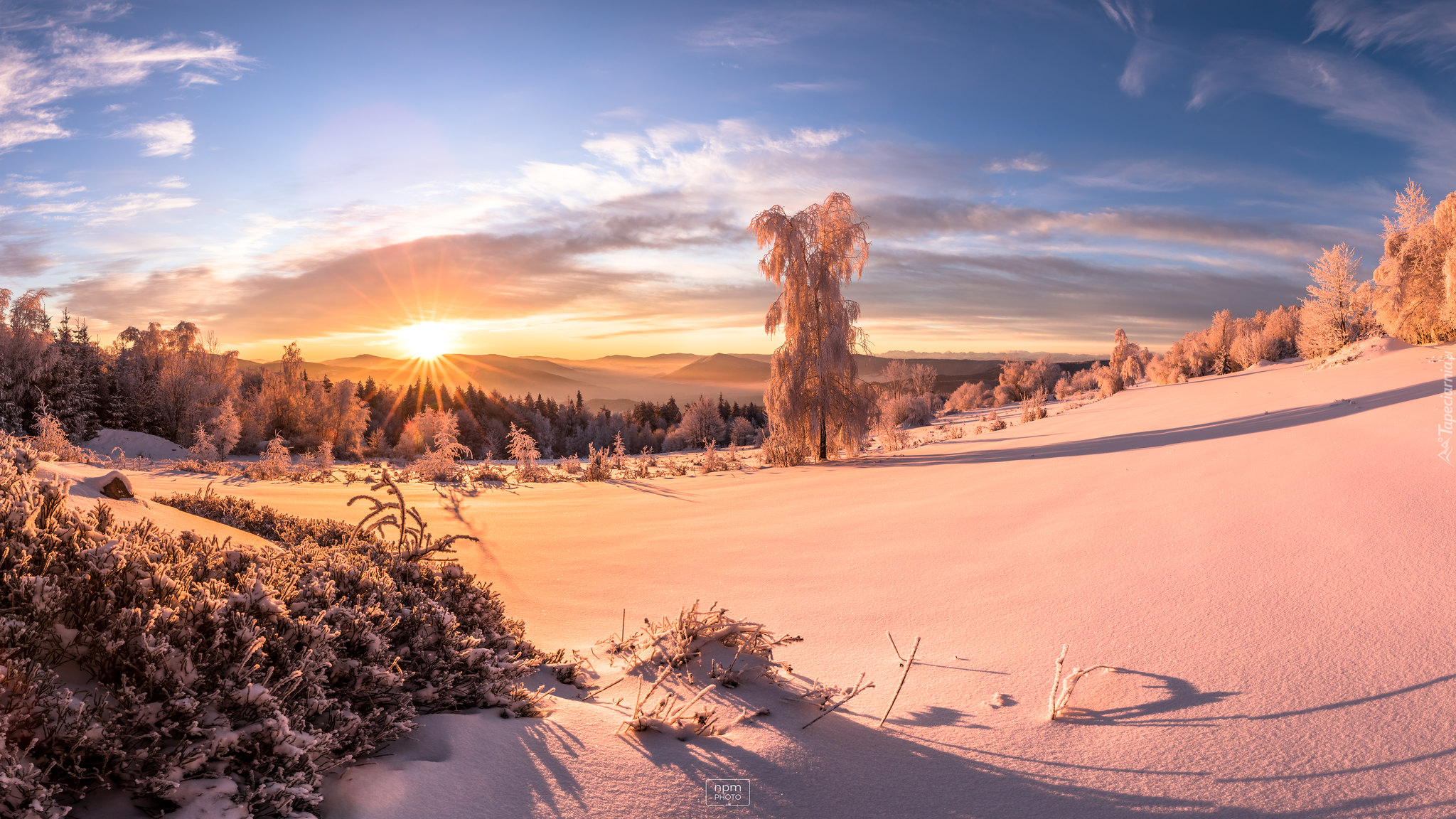 Edytor tapety: Zimowy wschód słońca w Beskidach