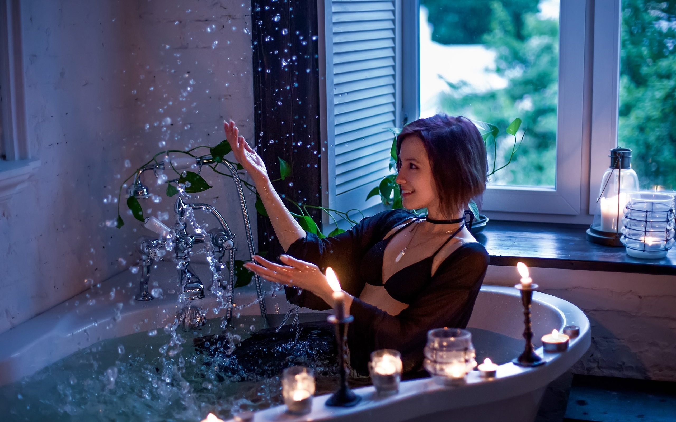 Edytor tapety: Kobieta przy zapalonych świecach w wannie