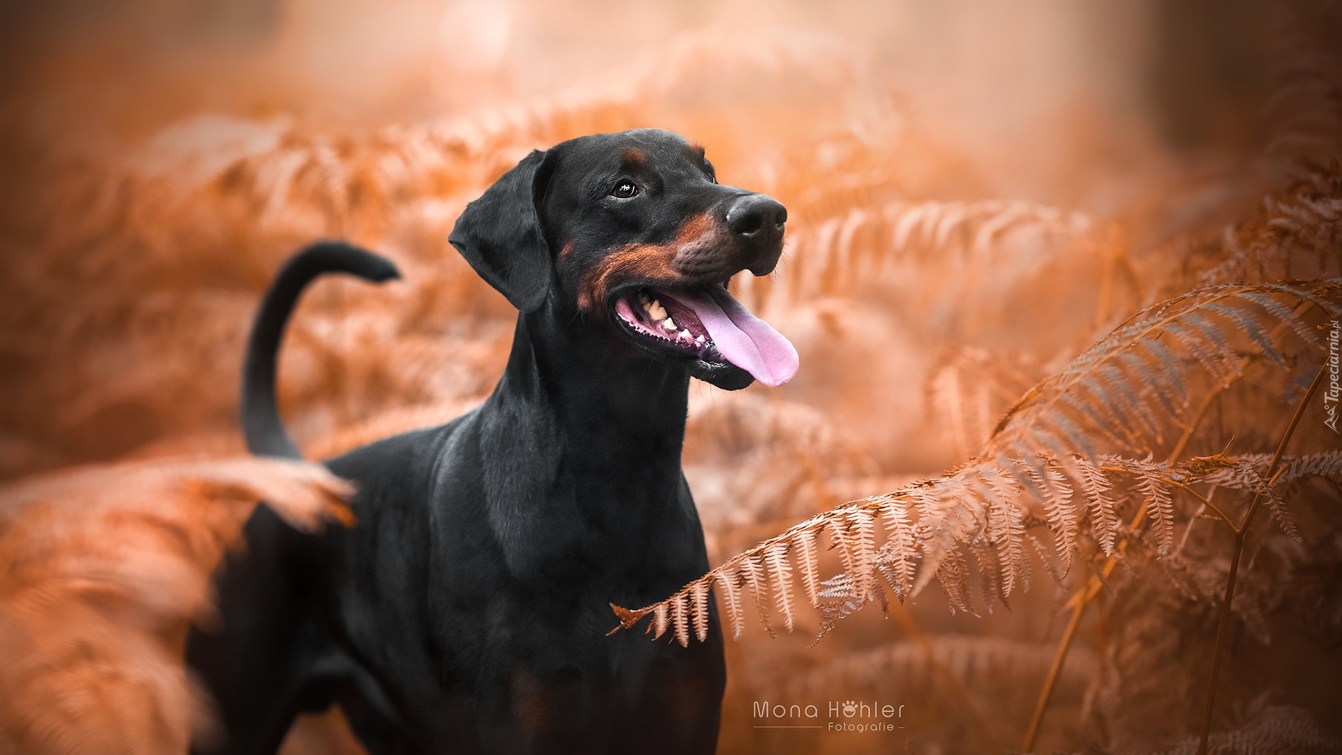 Edytor tapety: Doberman pośród paproci
