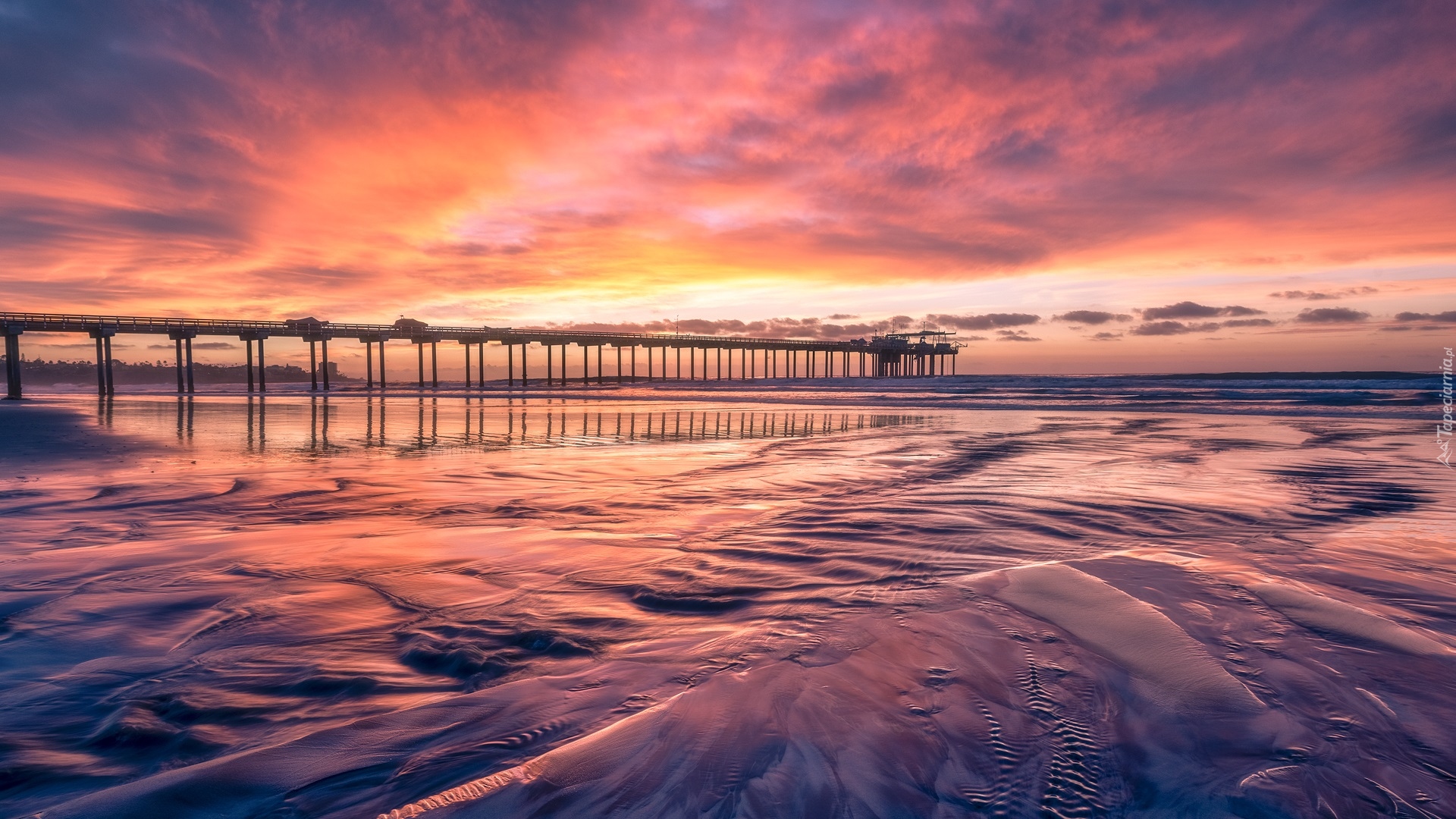 Edytor tapety: Molo na morzu pod kolorowym niebem