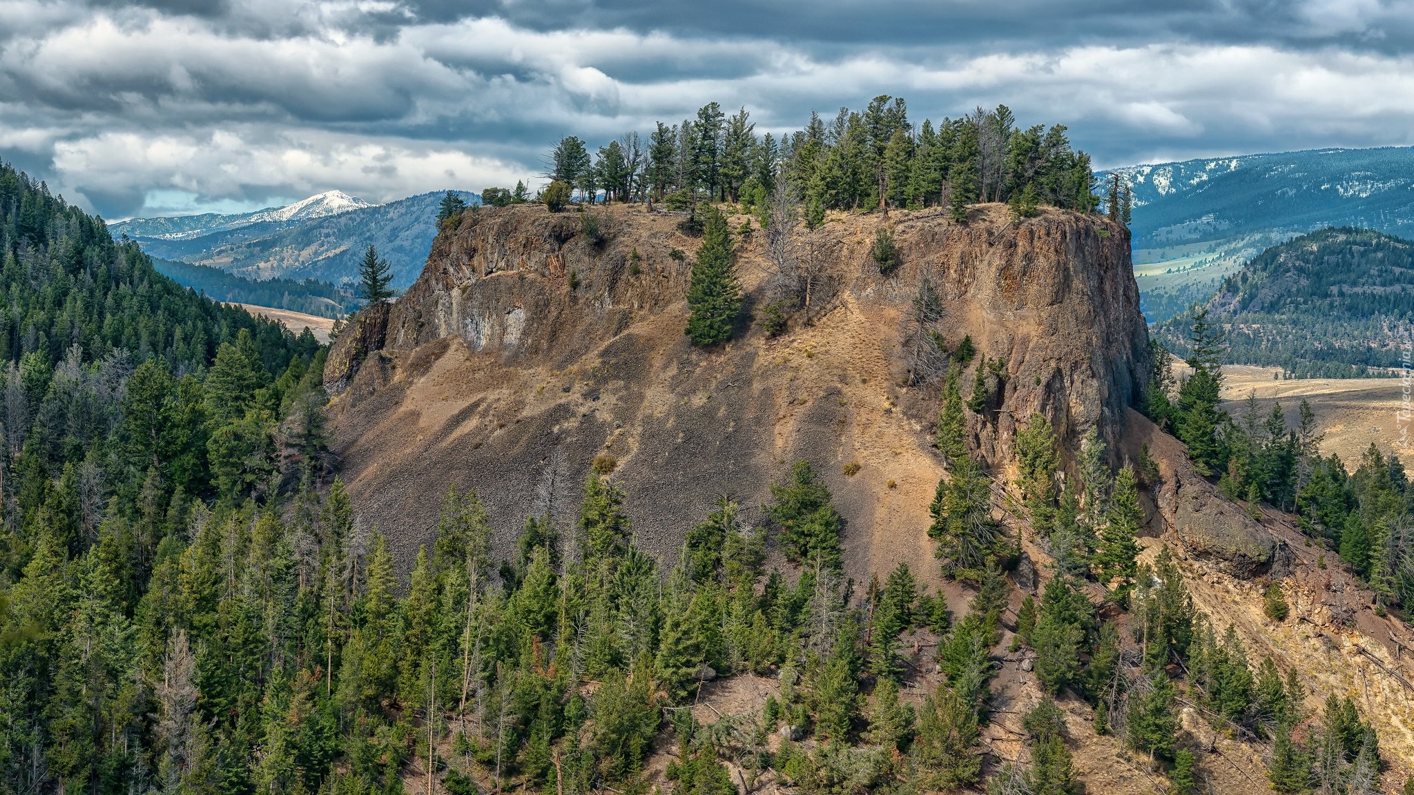 Edytor tapety: Zielone drzewa na wierzchołku góry