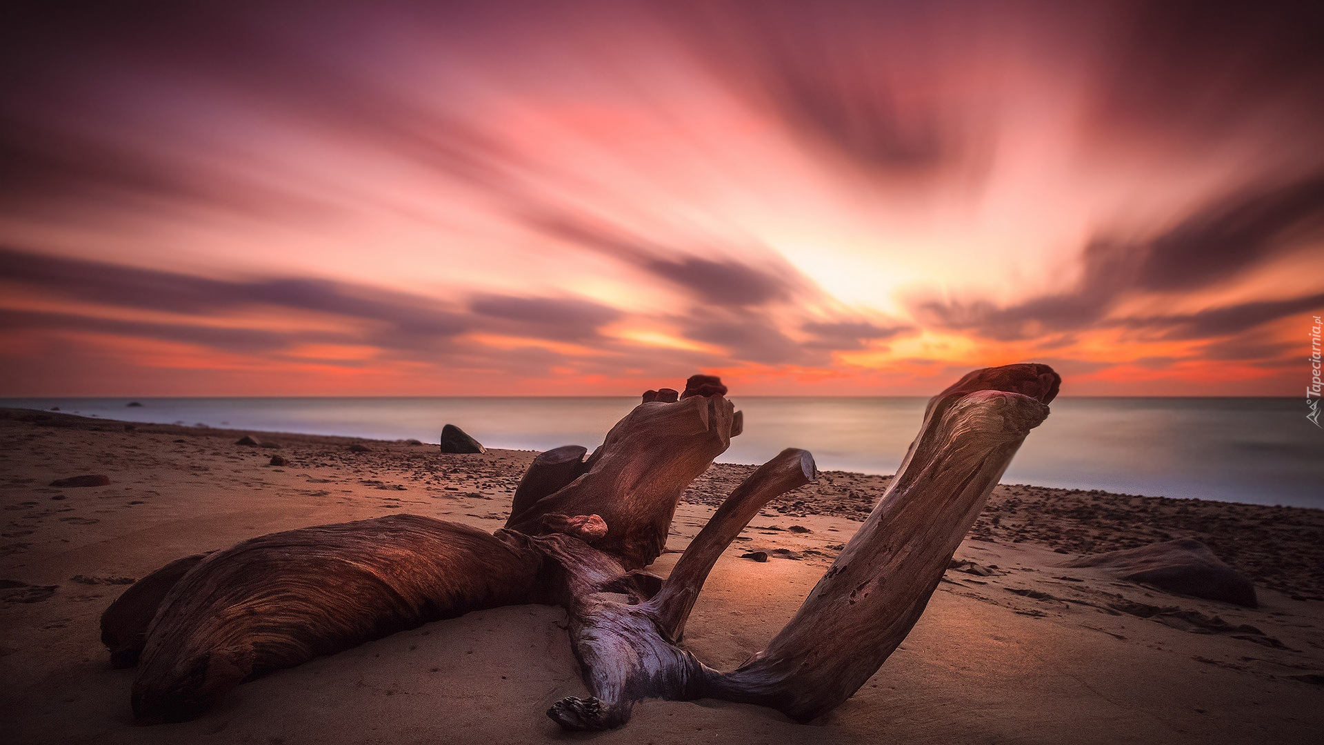Edytor tapety: Uschnięty konar nad brzegiem morza