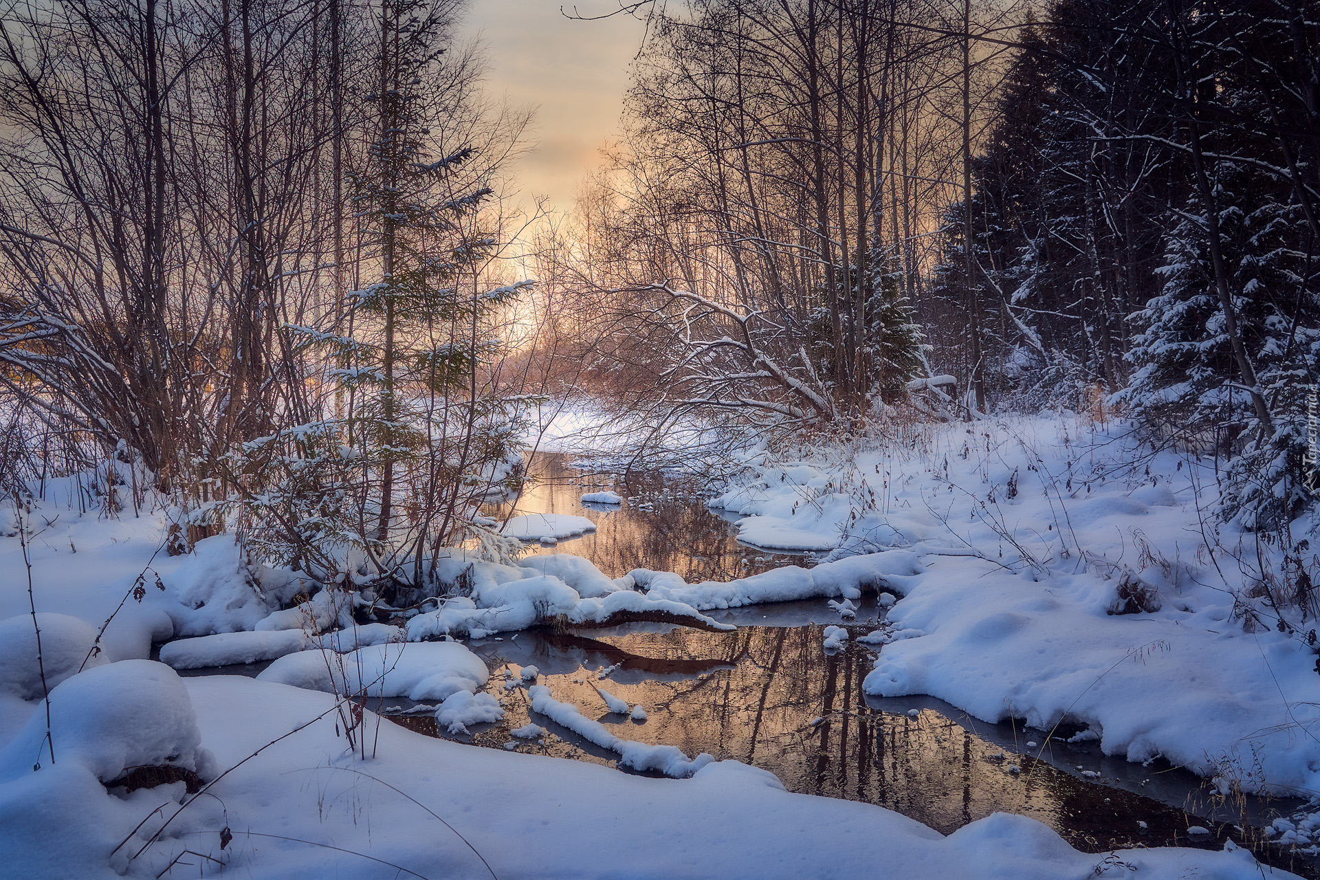 Edytor tapety: Ośnieżony konar na leśnej rzece