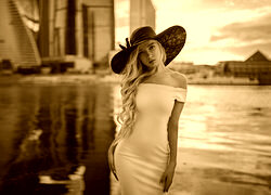Edytor tapety: Kobieta w białej sukience i czarnym kapeluszu