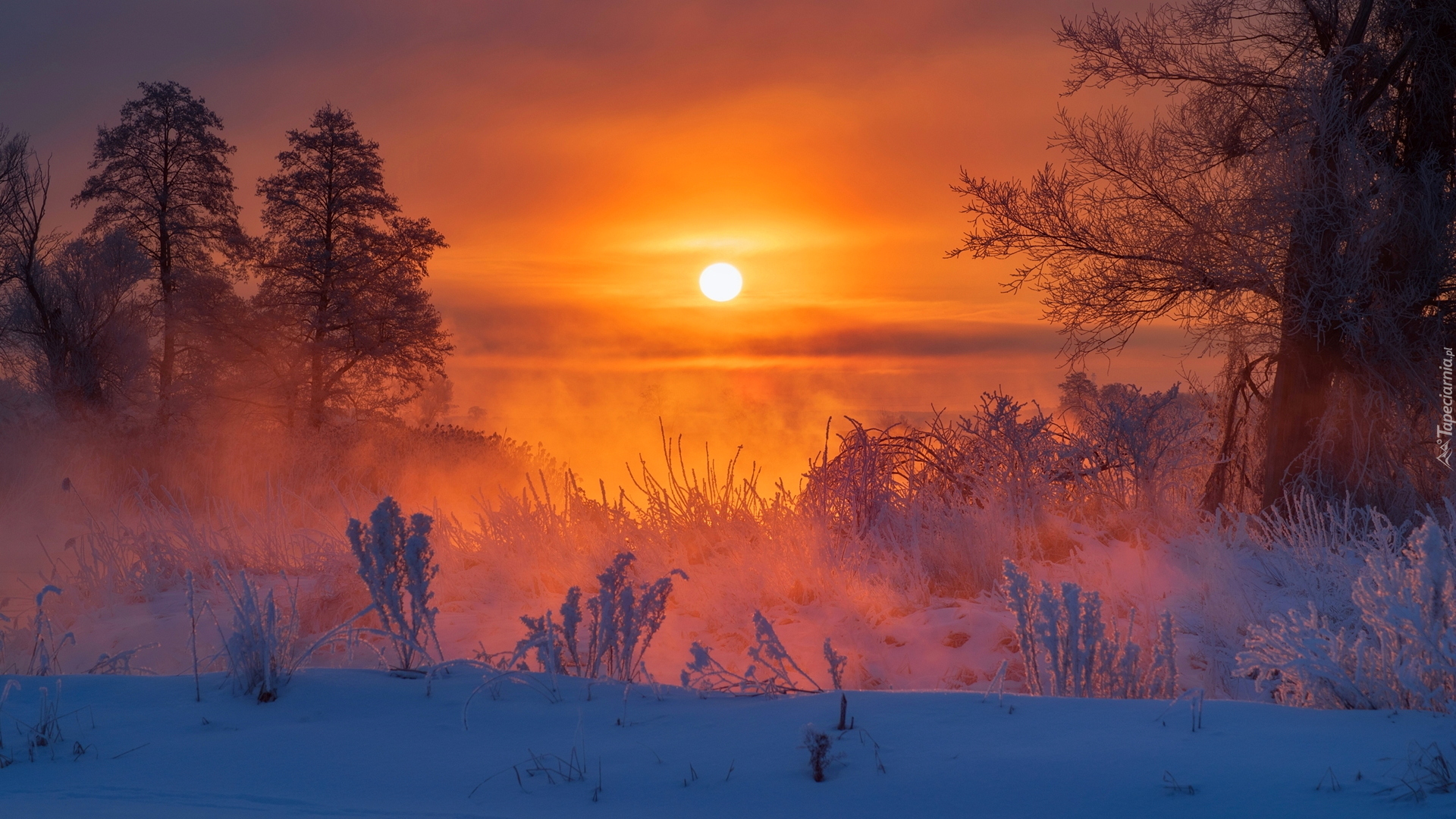 Edytor tapety: Zimowy poranek nad rzeką Gwda