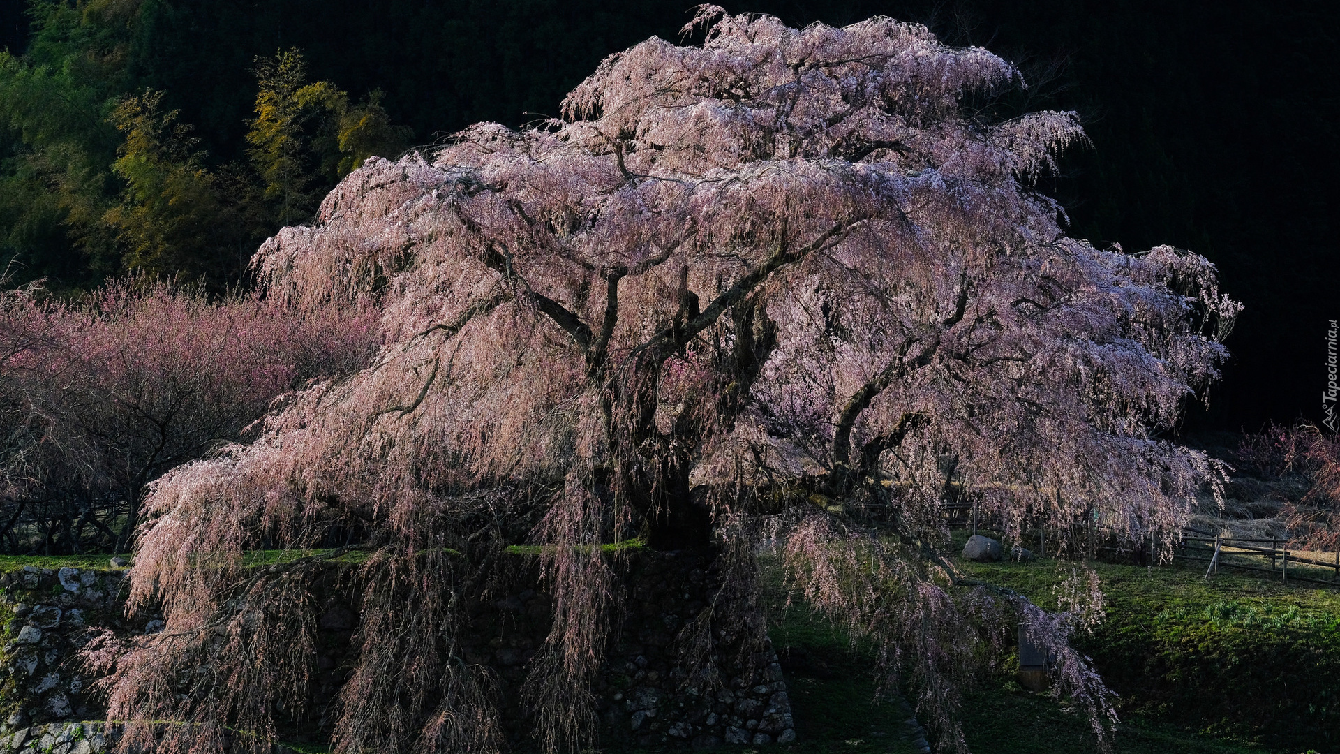 Edytor tapety: Okwiecone rozłożyste drzewo