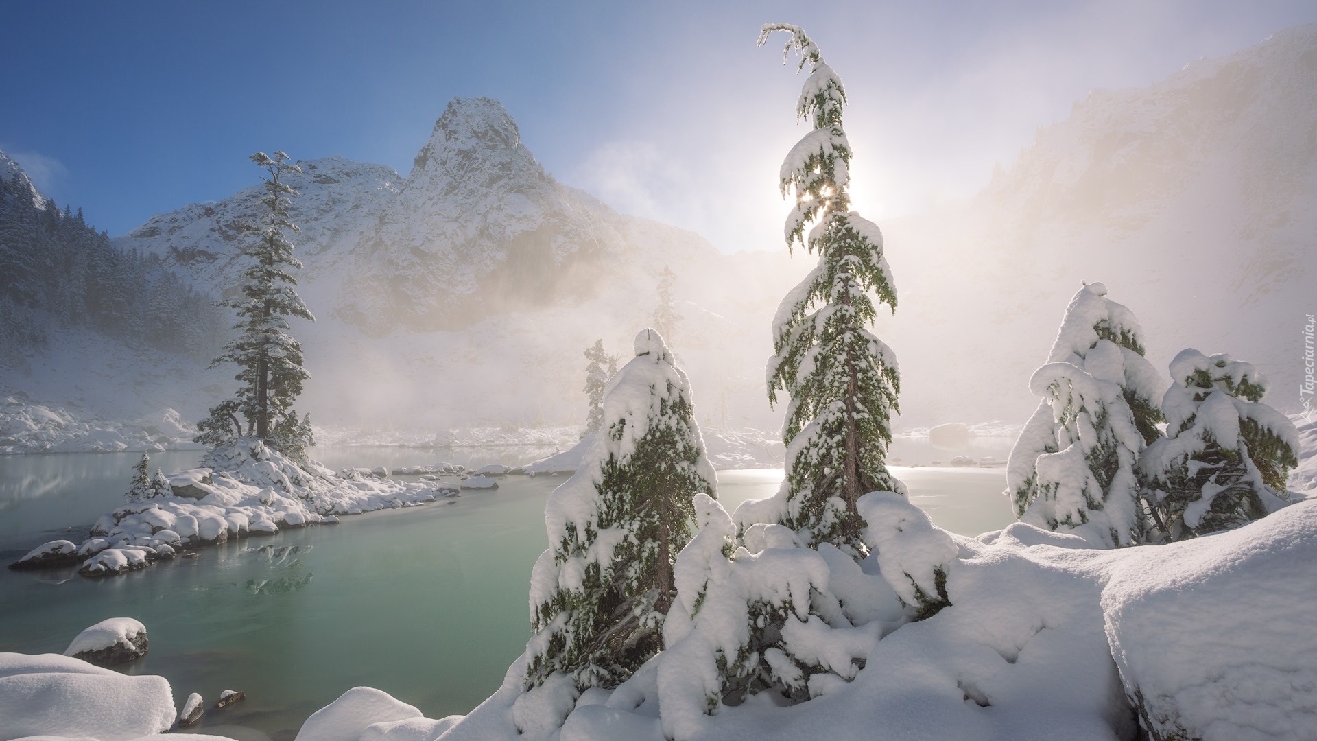 Edytor tapety: Jezioro we mgle w kanadyjskich Górach Nadbrzeżnych