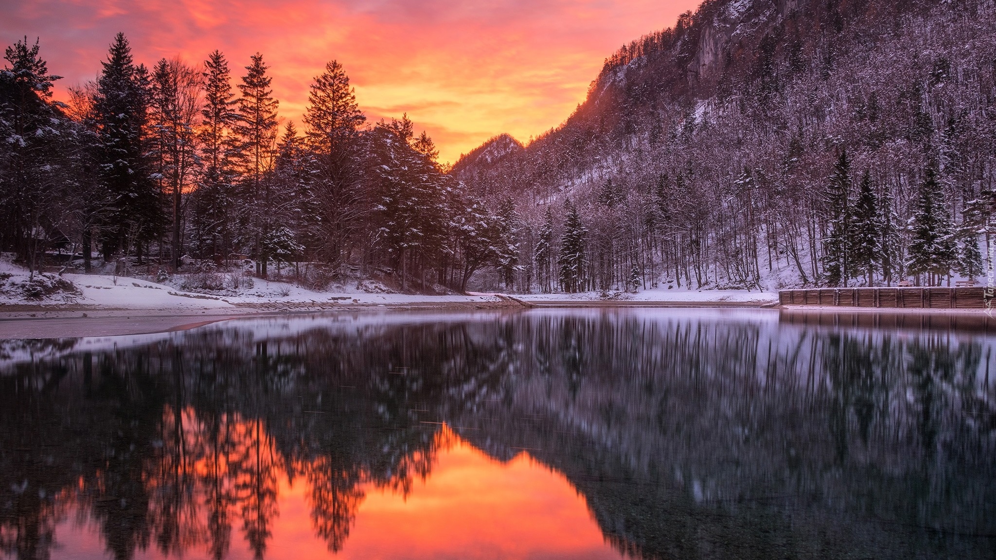 Edytor tapety: Drzewa nad jeziorem Lake Zavrsnica w Słowenii