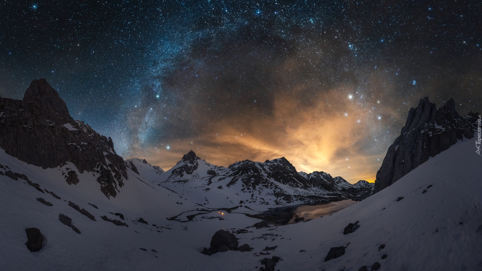 Edytor tapety: Droga Mleczna nad górskim jeziorem zimową porą