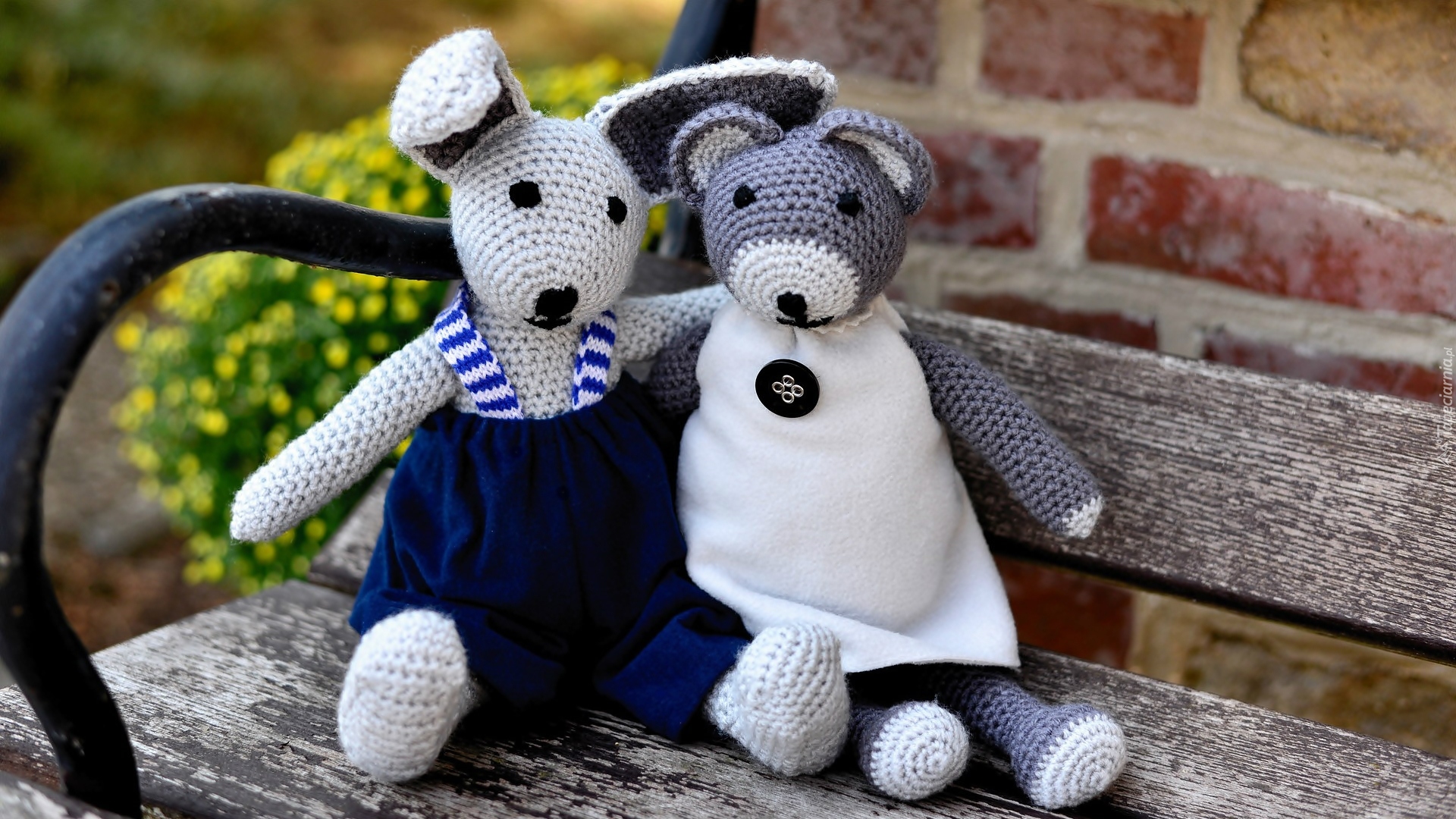 Edytor tapety: Dzianinowe zabawki na ławce