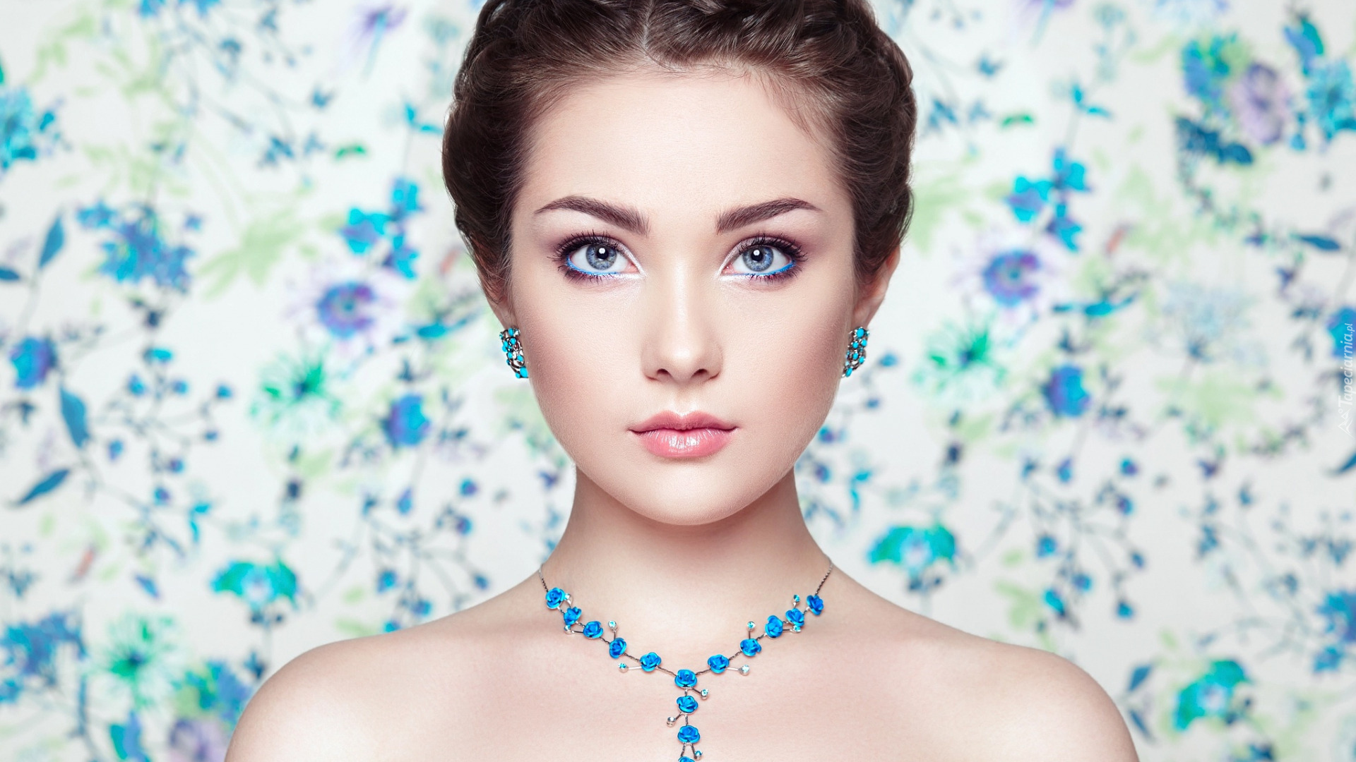 Edytor tapety: Kobieta w turkusowym naszyjniku i kolczykach